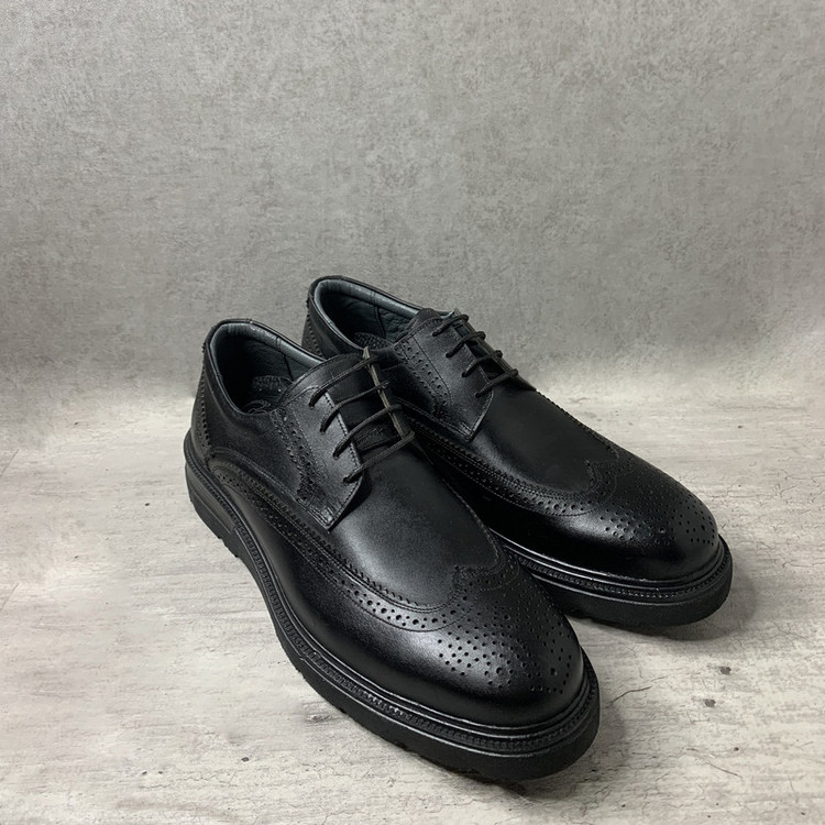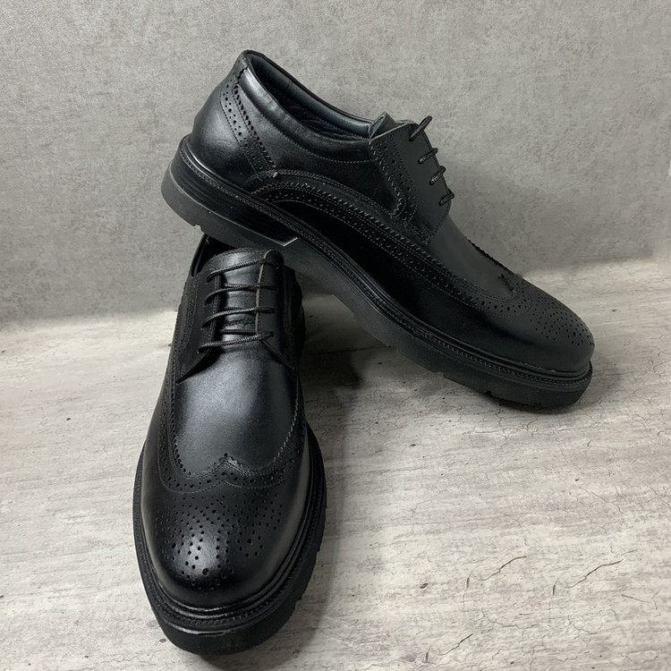 در ساخت رویه کفش موجود از چرم طبیعی گاوی به رنگ مشکی استفاده شده است استر داخلی کفش به جهت زیبایی و راحتی مصرف کننده با چرم مرغوب بزی به رنگ خاکستری استر شده است.کفی طبی با رویه چرم موجود در کفش مانع از خستگی وبوی نامطبوع کفش میگردد.زیره کفش از جنس پیو میباشد که سبک و مقاوم در برابر سایش میباشد.