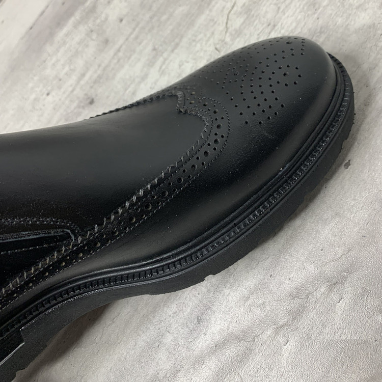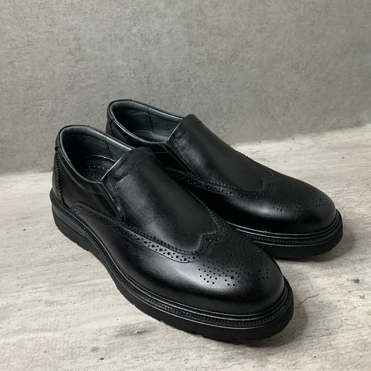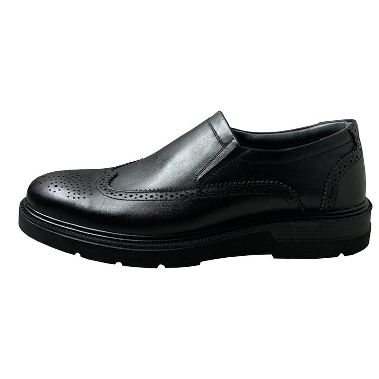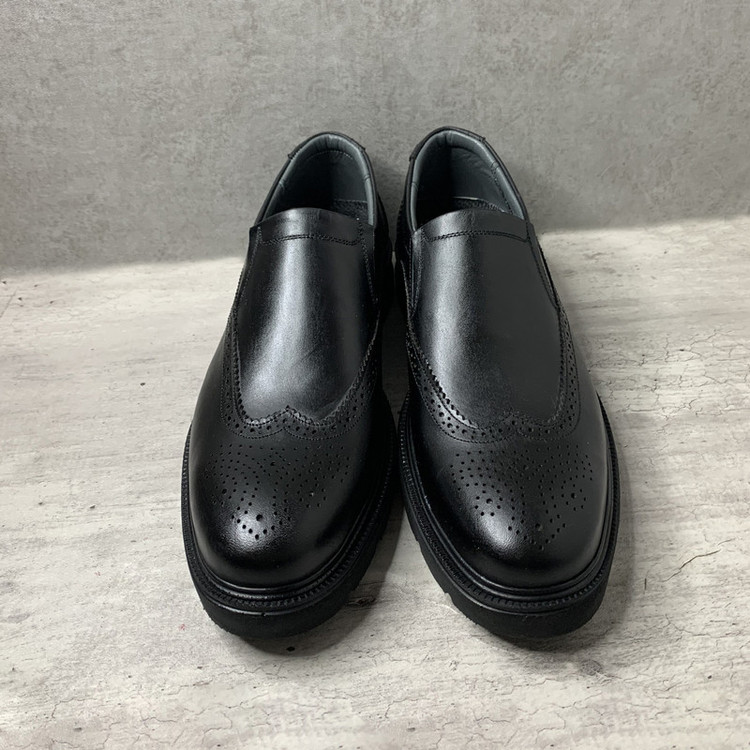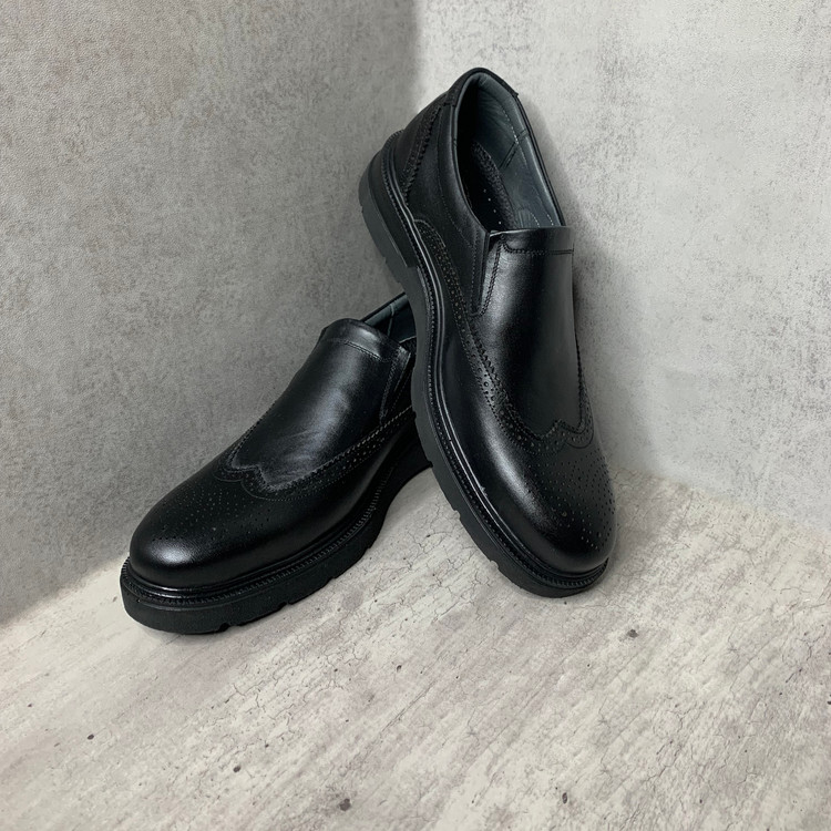 رویه کفش موجود از چرم طبیعی گاوی به رنگ مشکی تهیه شده است استر داخلی کفش به جهت زیبایی و راحتی مصرف کننده با چرم مرغوب بزی به رنگ خاکستری استر شده است.کفی طبی با رویه چرم موجود در کفش مانع از خستگی وبوی نامطبوع کفش میگردد.زیره کفش از جنس پیو میباشد که سبک و مقاوم در برابر سایش میباشد.