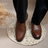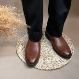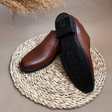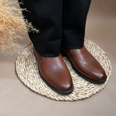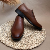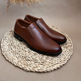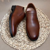 کفش چرم مردانه پسرانه مدل کلاسیک کش دار رنگ قهوه ای سایز 39 تا 44