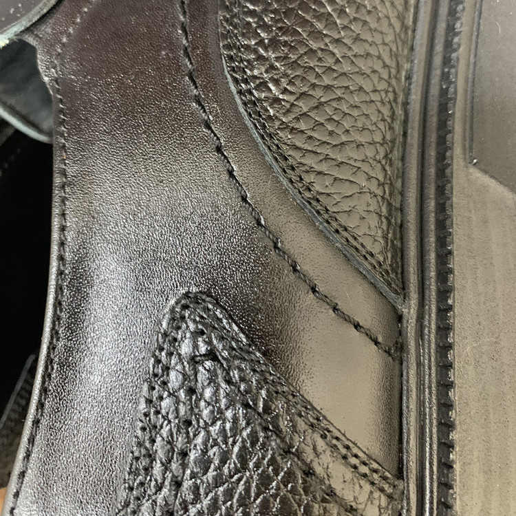 رویه کفش موجود از چرم طبیعی گاوی به رنگ مشکی تهیه شده است استر داخلی کفش به جهت زیبایی و راحتی مصرف کننده با چرم مرغوب بزی به رنگ خاکستری استر شده است.کفی طبی با رویه چرم موجود در کفش مانع از خستگی وبوی نامطبوع کفش میگردد.زیره کفش از جنس پیو میباشد که سبک و مقاوم در برابر سایش میباشد.چرم طرحدار کفش مدل شرانک خطوط چرم طبیعی حین استفاده را نشان نمیدهد و زیبایی کفش را حفظ میکند.