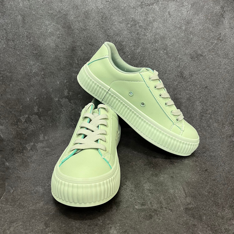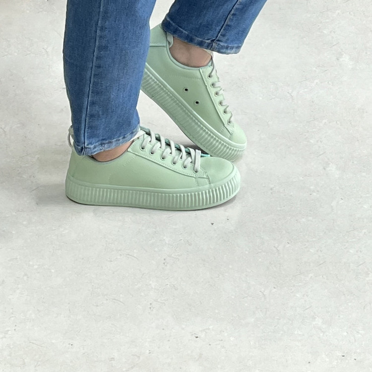 کفش روزمره زنانه مدل موگه چرم پا ارا بسیار سبک نرم و راحت میباشد .زیره کفش از پی یو تهیه شده است که سبک و مقاوم در برابر شکستن و سایش است.رویه کفش از چرم صنعی درجه یک به رنگ سبز تهیه شده و پشت پا و کفی کفش با پارچه سوزنی به جهت راحتی شما آستر شده است.سایزبندی کفش به این صورت است:سایز 37 :22 و سایز 38:23 سانتی متر است.
