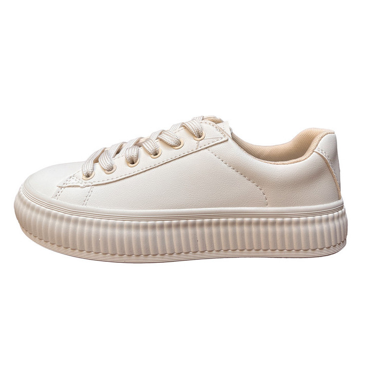 کفش روزمره زنانه مدل موگه بسیار سبک و راحت میباشد .زیره کفش از پی یو تهیه شده است که سبک و مقاوم در برابر شکستن و سایش است.رویه کفش از چرم صنعتی درجه یک به رنگ کرم روشن تهیه شده و پشت پا و کفی کفش با پارچه سوزنی به جهت راحتی شما آستر شده است.سایزبندی کفش به این صورت است:سایز 37 :22 و سایز 38:23 سانتی متر است.