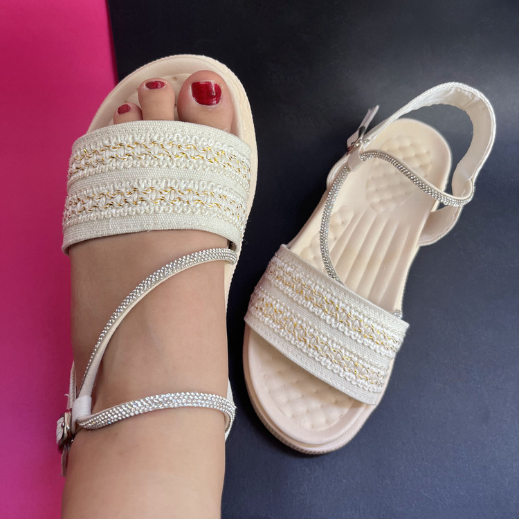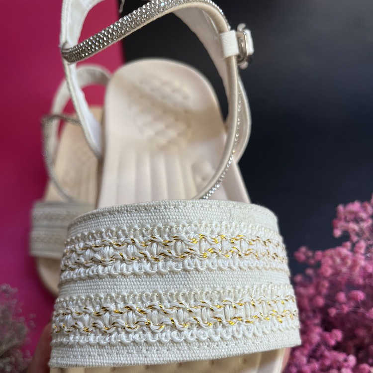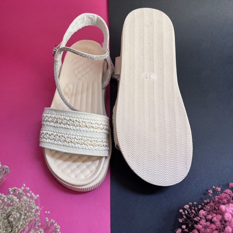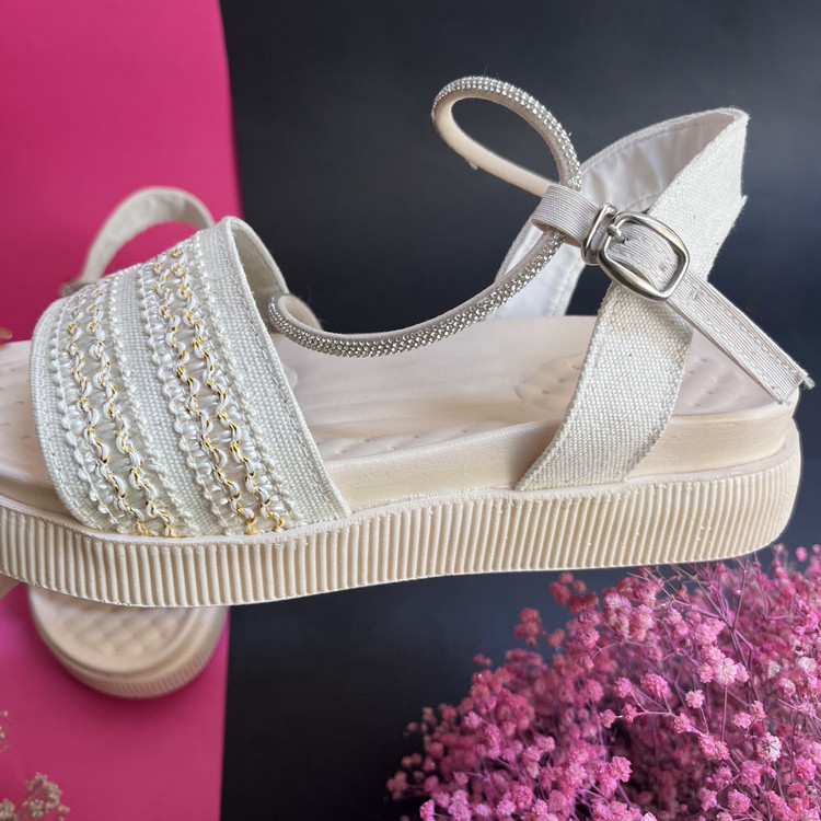 صندل زنانه دخترانه مدل سانیا یک صندل شیک ، ترند و بسیار خوش پا و راحت است. این صندل از پارچه کنف با استر فوم (به جهت راحتی پای شما )منعطف و نرم تهیه شده است.زیره این صندل از جنس پلی اورتان بسیار نرم ،منعطف و مقاوم در برابر شکستن و سایش است. یک لایه لژ ابری تنفسی برای جلوگیری از تعریق و سرخوردن پا و نرم بودن صندل بر روی کفی اصلی کفش استفاده شده است.نحوه باز و بست کفش با قفل سگکی قابل تنظیم میباشد. بند نگینی بکار رفته در کفش پرسی میباشد و نگین ها خراب نمیشوند .سایزبندی کار استاندارد است.