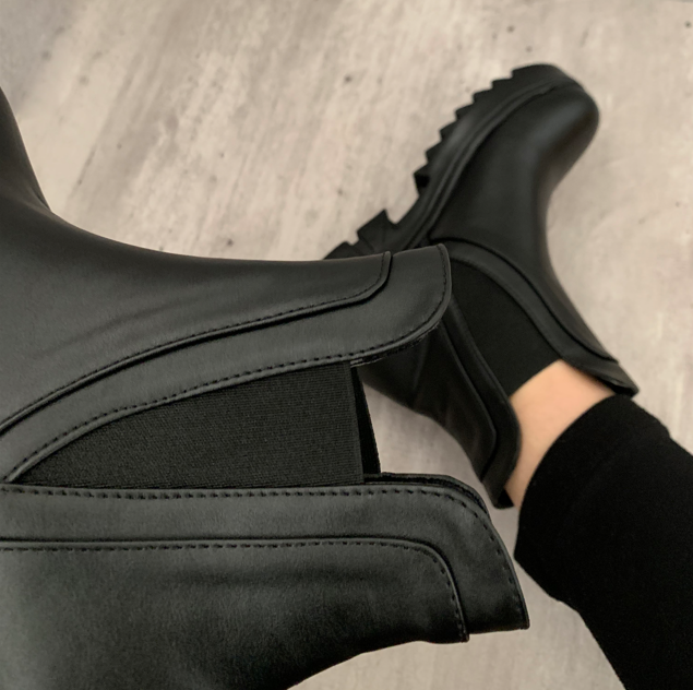 جنس رویه کفش از چرم مصنوعی نرم و مرغوب میباشد زیره این کفش از پی یو طبی بسیار سبک ومقاوم در برابر سایش وشکستن است.در دوطرف کفش از کش باوام با دوخت بسیار ظریف استفاده شده است.ارتفاع لز درپنجه 2.5 و در پاشنه 4.5 و ارتفاع ساق 15 سانتی متر میباشد.