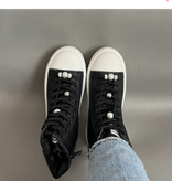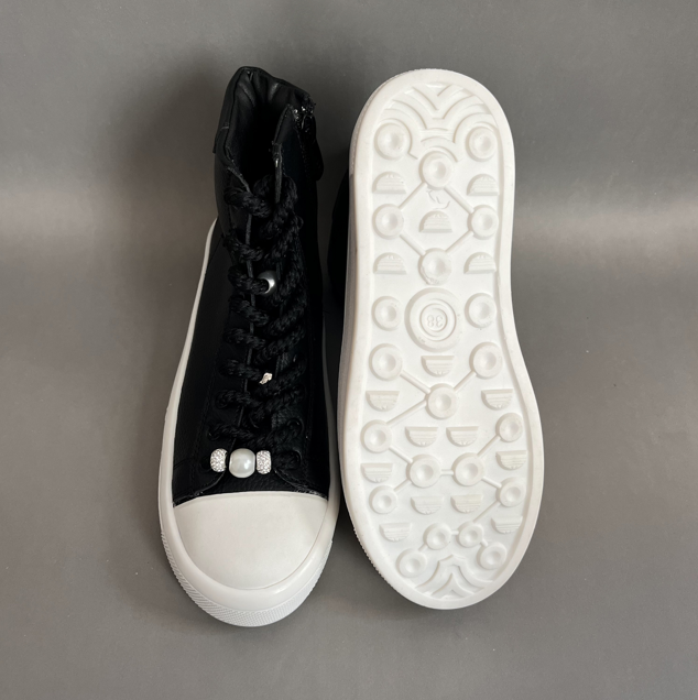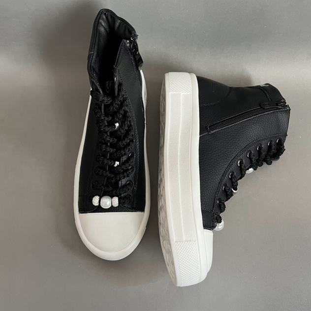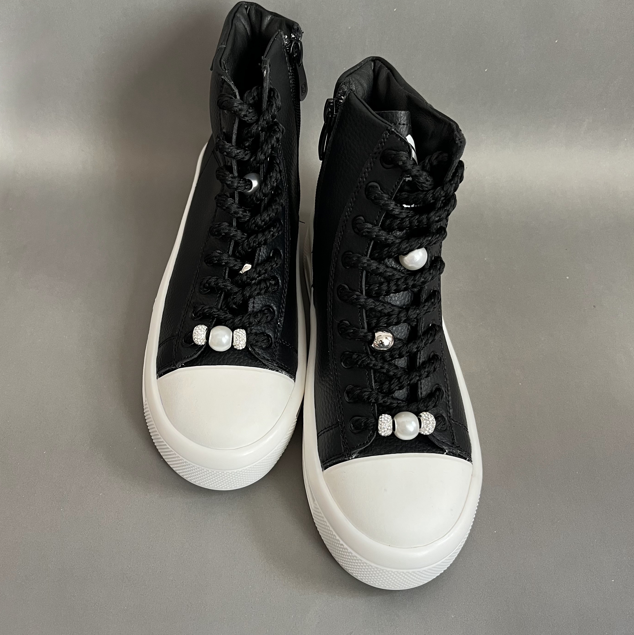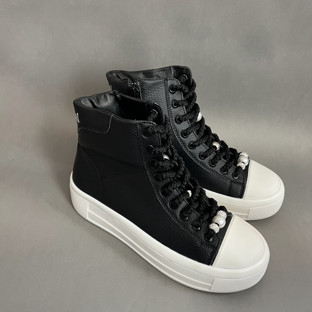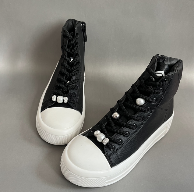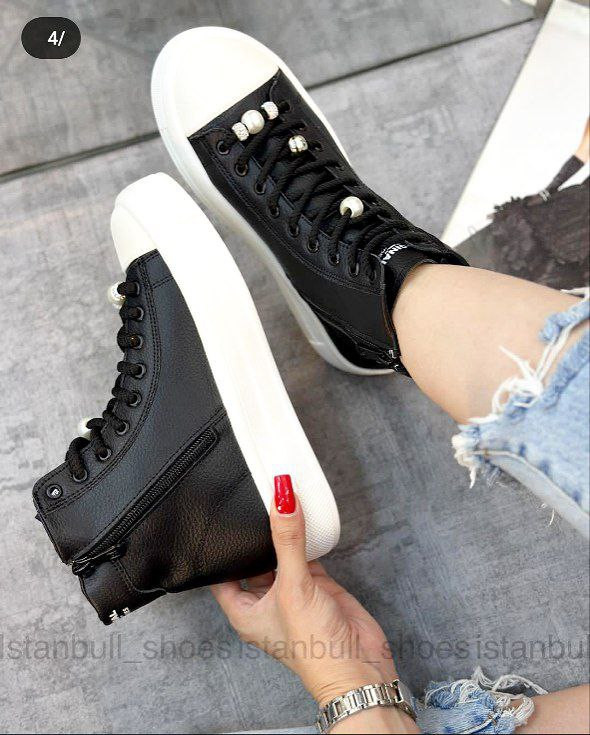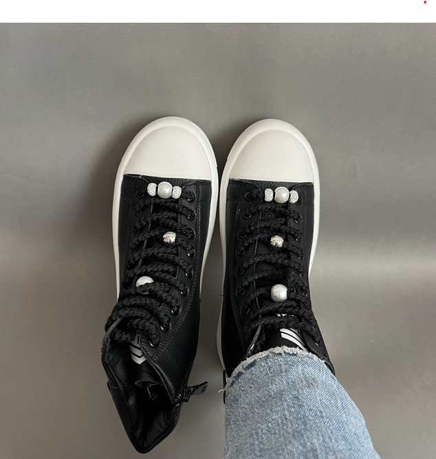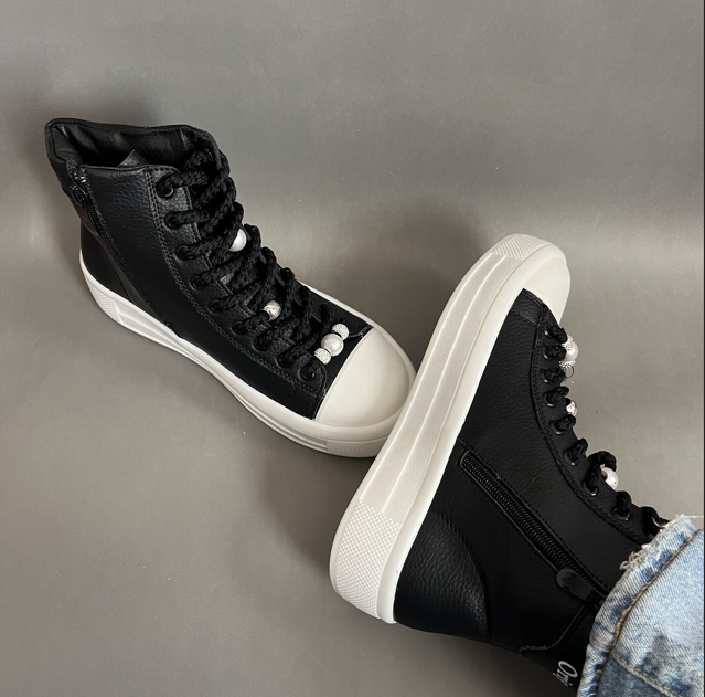 نیم بوت اسپرت زنانه مدل صدف یک نیم بوت اسپرت ، جذاب وسبک میباشد.رویه این کفش از جنس چرم صنعتی نرم به رنگ مشکی است .داخل کفش دور تا دور ساق و کف کفش با اسفنج طبی به جهت راحتی بیشتر هنگام استفاده بستر سازی شده است .زیره این کفش از پلی اورتان سبک و مقاوم در برابر شکستن و سایش است .سایزبندی این کفش استاندارد است و مروارید های بند قابل تعویض میباشند .