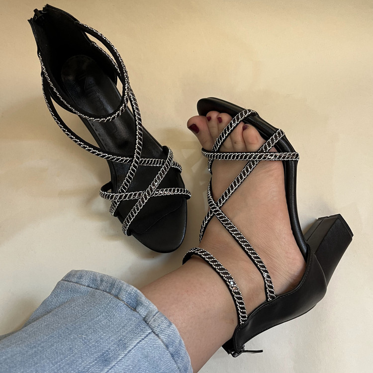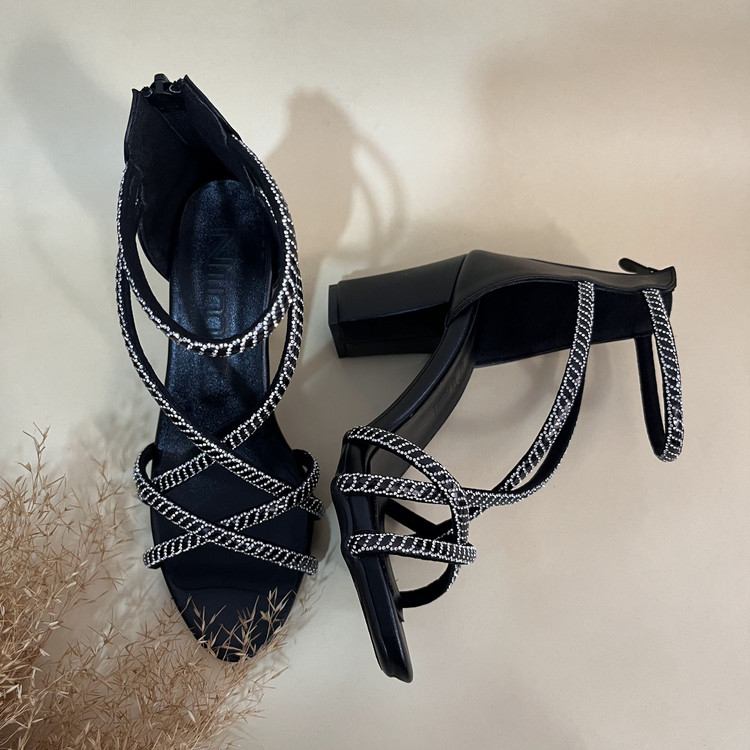 صندل مجلسی زنانه نگینی مدل شهاب رنگ مشکی