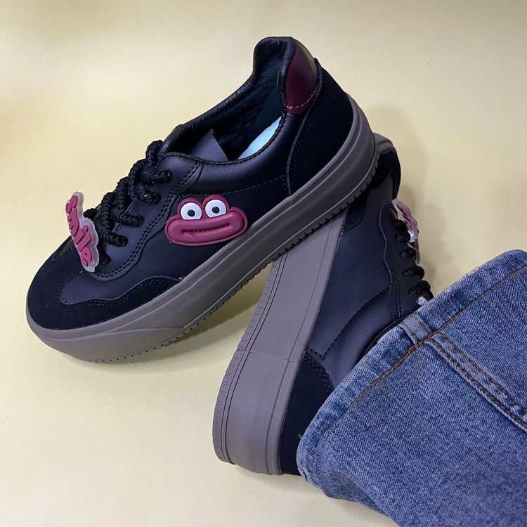 کفش اسپرت زنانه لژدار مدل ونس لبخند رنگ مشکی سایزبندی 37 تا 41