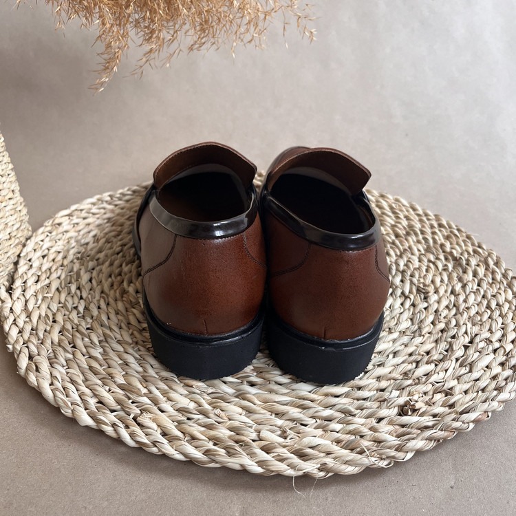 کفش مردانه کالج چرم طبیعی اصل مدل ویستا چرم پا آرا :رویه کفش موجود از چرم طبیعی گاوی به رنگ قهوه ای تهیه شده است استر داخلی کفش به جهت زیبایی و راحتی مصرف کننده با چرم مرغوب بزی به رنگ عسلی استر شده است.زیره کفش از جنس پیو میباشد که سبک و مقاوم در برابر سایش میباشد.