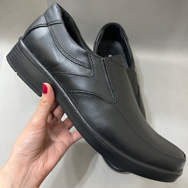 کفش چرم طبیعی مردانه اداری روزمره مدل آلما با رویه چرم طبیعی مشکی تهیه شده است .داخل کفش تا نیمه با فوم مرغوب آستر کشی شده است و در قسمت پنجه به دلیل تعریق بهتر و تهویه هوا از پارچه کتان استفاده شده است.زیره کفش زیره سبک و مقاوم در برابر شکستن و سایش پی یو میباشد سایز بندی این کار استاندارد است. 🙌👟