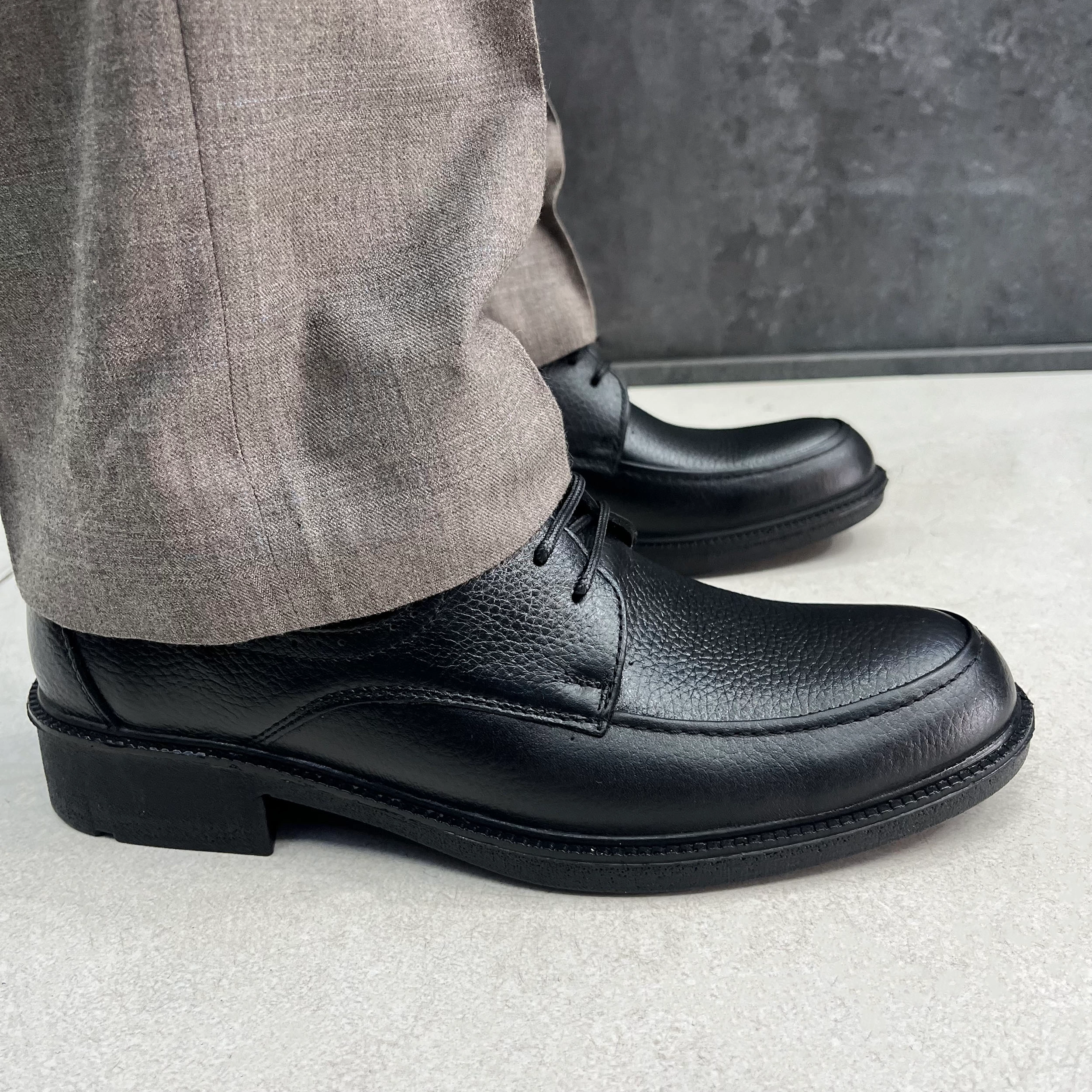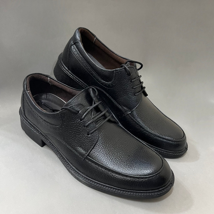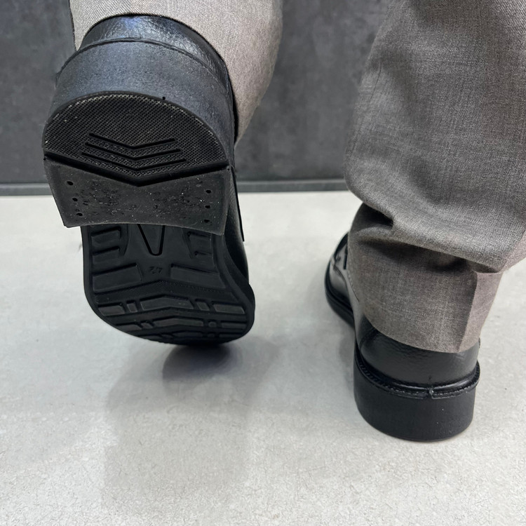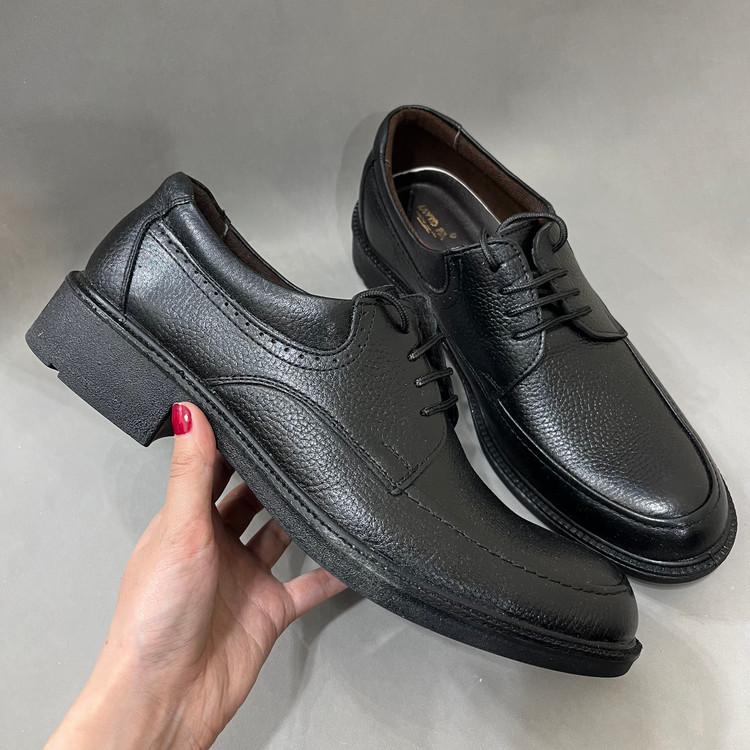 کفش چرم طبیعی مردانه اداری روزمره مدل آلما با رویه چرم طبیعی مشکی تهیه شده است .داخل کفش تا نیمه با پارچه پرز دار قهوه ای آستر کشی شده است و در قسمت پنجه به دلیل تعریق بهتر و تهویه هوا از پارچه کتان استفاده شده است.زیره کفش زیره سبک و مقاوم در برابر شکستن و سایش پی یو میباشد سایز بندی این کار استاندارد است.🙌👟