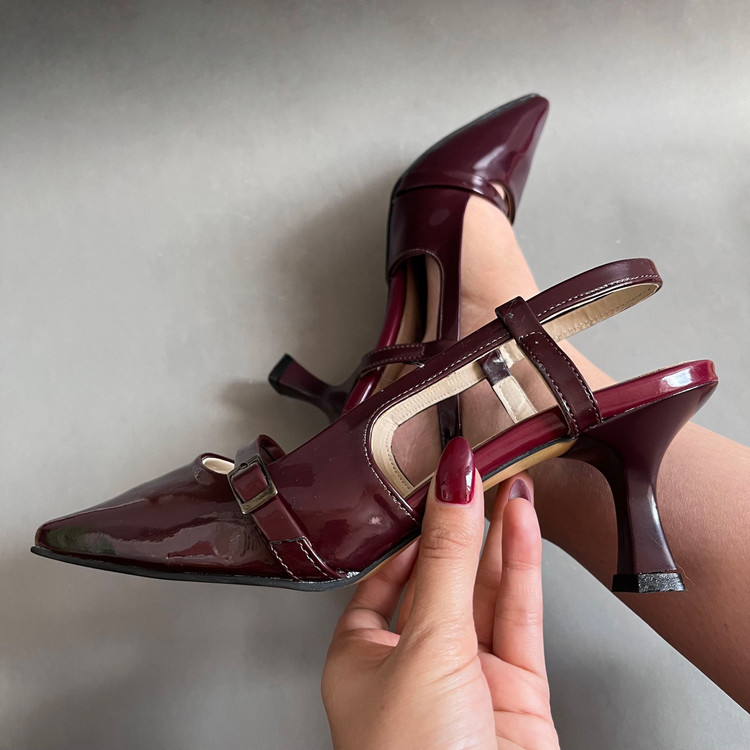 کفش مجلسی زنانه مدل فالکون ورنی رنگ چری زرشکی پاشنه 6 سانت