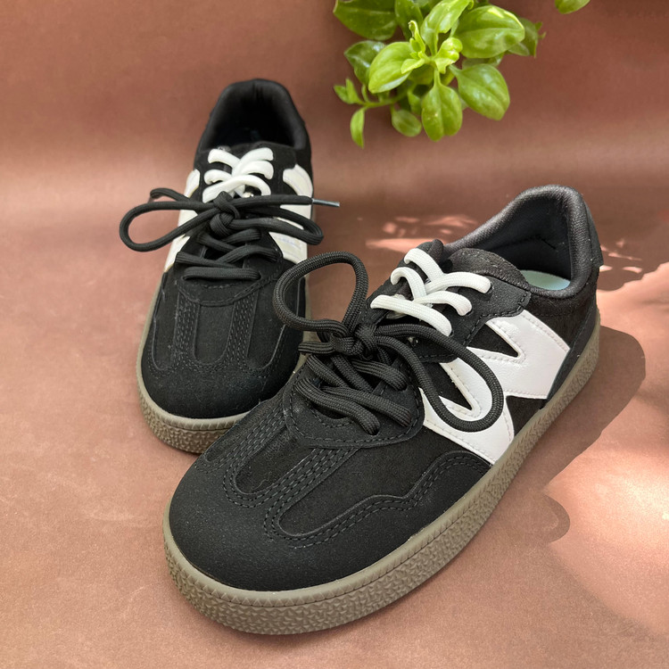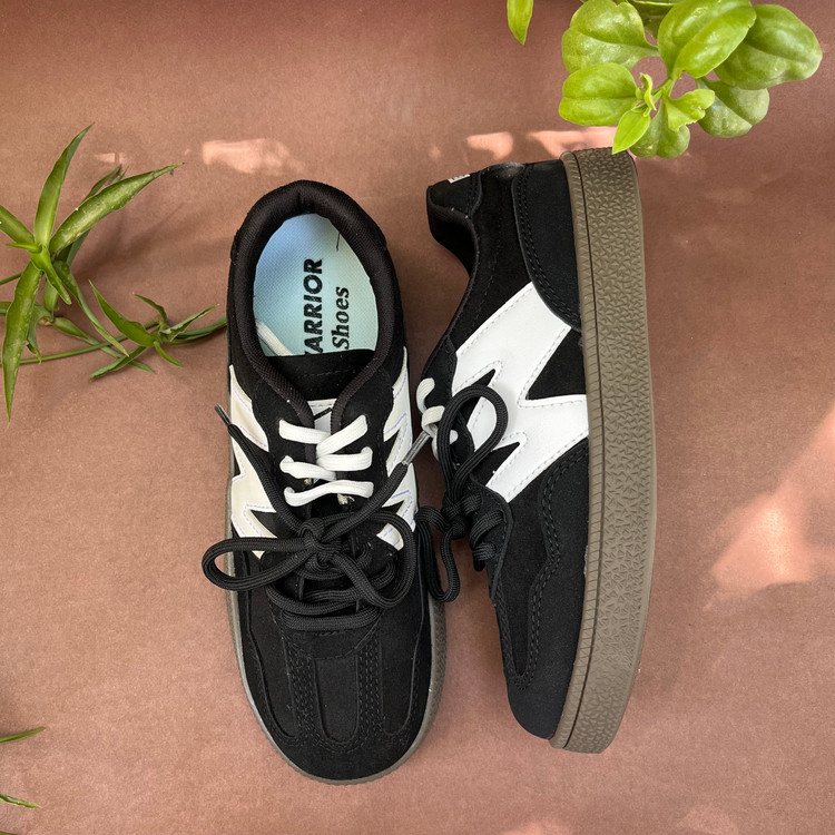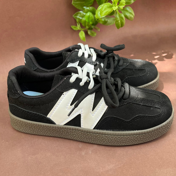 کفش ونس زنانه لژ دار مدل دبلیو رنگ مشکی با رویه ترکیب از چرم صنعتی و اشبالت تهیه شده.زیره این کار زیره PU درجه یک میباشد.این کار دارای دو بند است که هم میتوان به صورت همزمان و هم جداگانه از آن استفاده کرد.سایز بندی این کار استاندارد و ارتفاع لژ آن 3 سانتی متر میباشد.