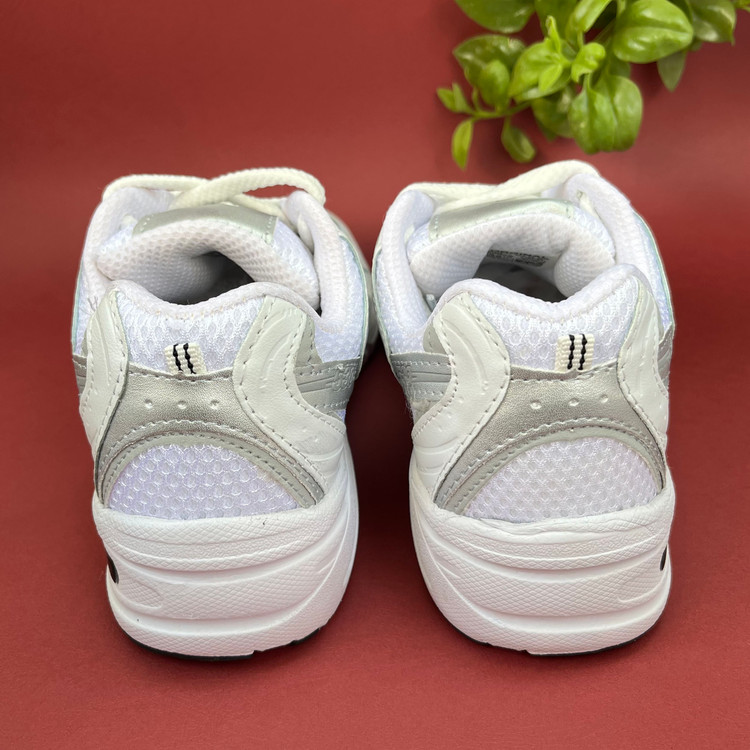 کفش نیوبالانس 530 زنانه رنگ سفید طوسی،با رویه ترکیبی از پارچه اسپنسر درجه یک و چرم صنعتی تهیه شده است .زیره این کار زیره پی یو مقاوم در برابر شکستن و سایش است از ویژگی های دیگر این زیره به ثبات رنگ و زرد نشدن ان میتوان اشاره کرد.داخل کفش به جهت راحتی و تعریق بهتر با پارچه سوزنی آستر کشی شده است .این کفش تماما از داخل دور دوزی شده و محکم میباشد.سایزبندی کار استاندارد است.