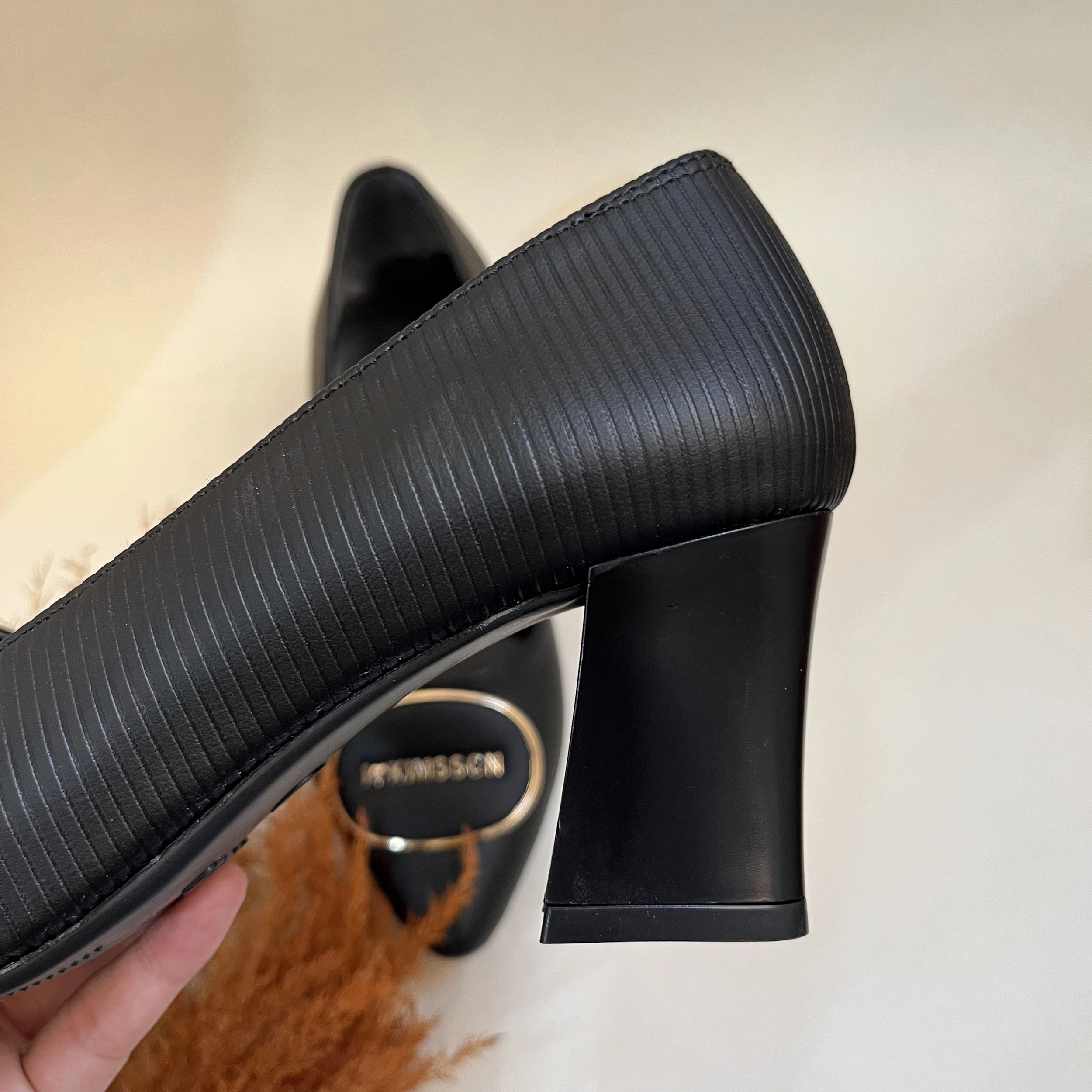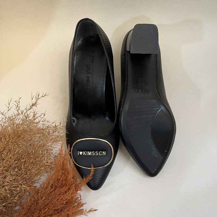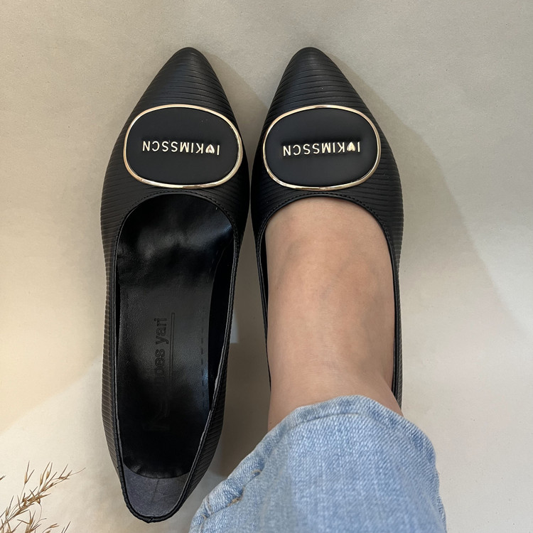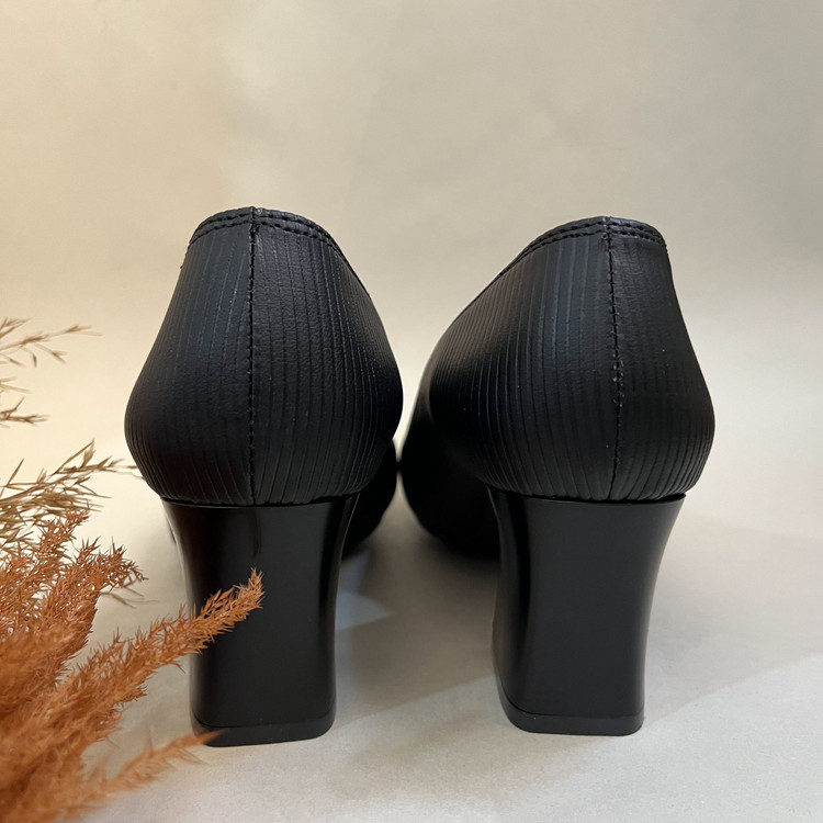 رویه کفش حاضر ازچرم صنعتی درجه یک به رنگ مشکی وطرح کبریتی تهیه شده است.پاشنه کفش به ارتفاع 5 سانتی متر با چرمی از جنس رویه دوخت شده است .پاشنه پهن کفش، ایستایی و استفاده روزمره و طولانی مدت از کفش را راحت میسازد .پشت کفش قسمت جورابگیر با استر پرز دار به جهت اصطحکاک و سر نخوردن پا هنگام استفاده استر شده است .سایزبندی کفش به این صورت است،طول سایز 36 :23 و سایز 37 :23 و سایز 38 :24....