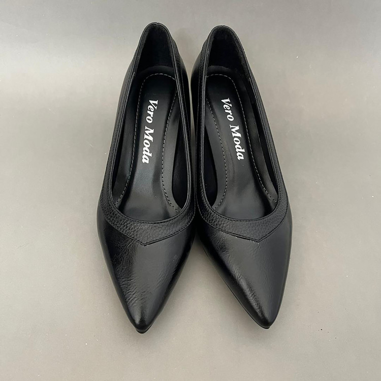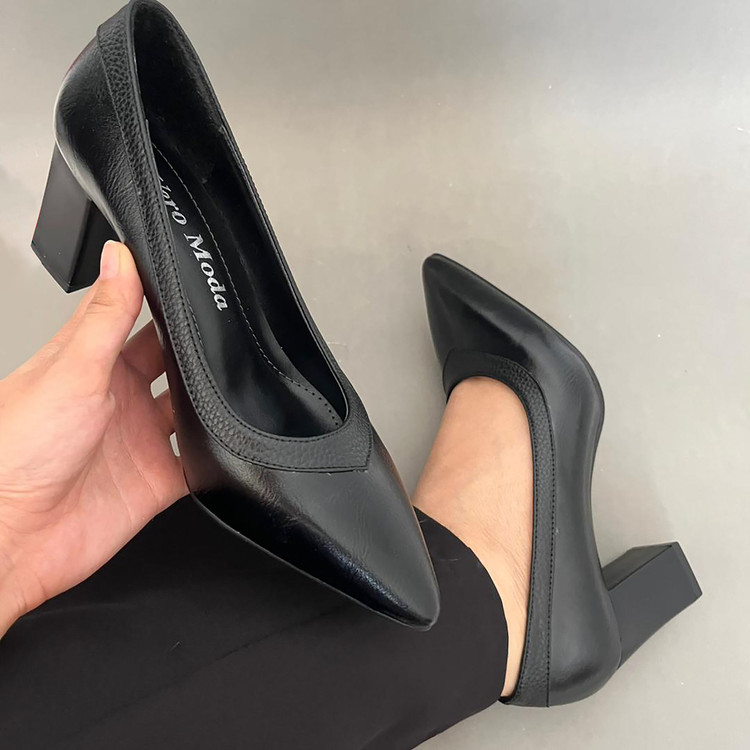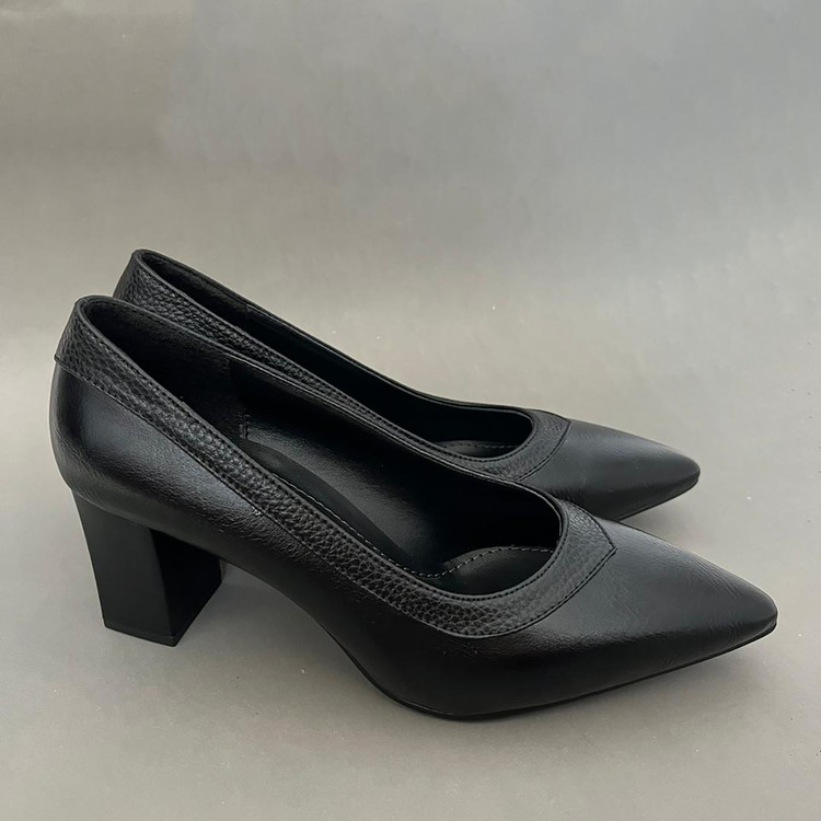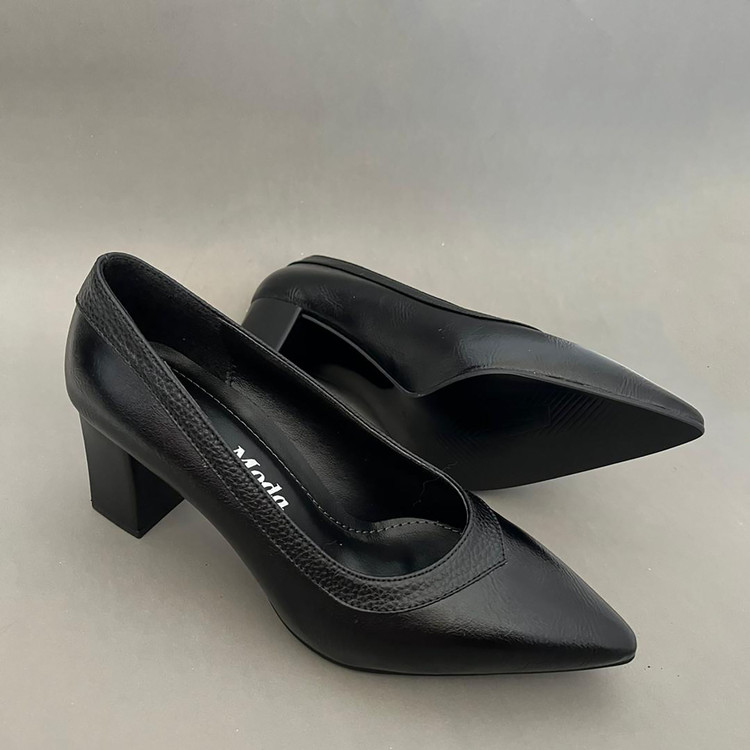 کفش پاشنه دار مجلسی اداری زنانه مدل ریتا ،با رویه چرم صنعتی درجه یک تهیه شده و زیره ان زیره دافوس میباشد . این کفش داری پد برای پرکردن قوس کف پا برای راحتی در استفاده میباشد .ارتفاع پاشنه این کفش 6 سانتی متر میباشد .و سایز بندی این کار استاندارد است
