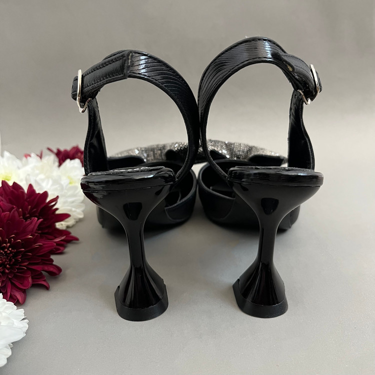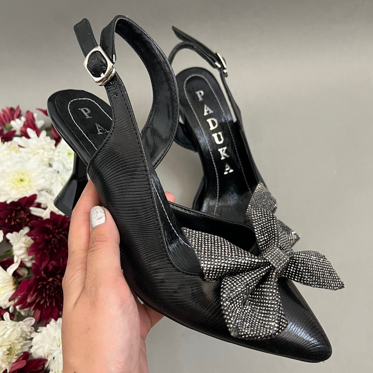 کفش مجلسی زنانه مدل گلاره ،با رویه چرم ورنی طرحدار تهیه شده و باز و بست کفش با قفل سگکی قابل تنظیم میباشد. .زیره این کفش زیره داووس درجه یک کف مشکی کار شده و کف کفش به جهت پر کردن قوس پا و راحتی بیشتر پد با روکش ورنی کفش تعبیه شده است.مدل پاشنه این کفش کلوش با ایستایی و راحتی میباشد که پا خور کفش را بسیار راحت کرده است.ارتفاع پاشنه کفش 6 سانتی متر و سایزبندی ان استاندارد میباشد.