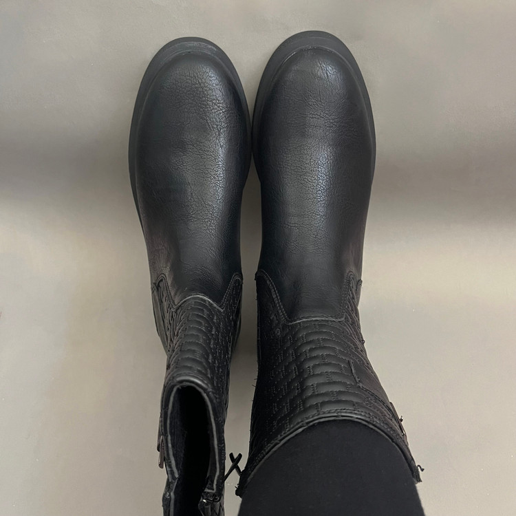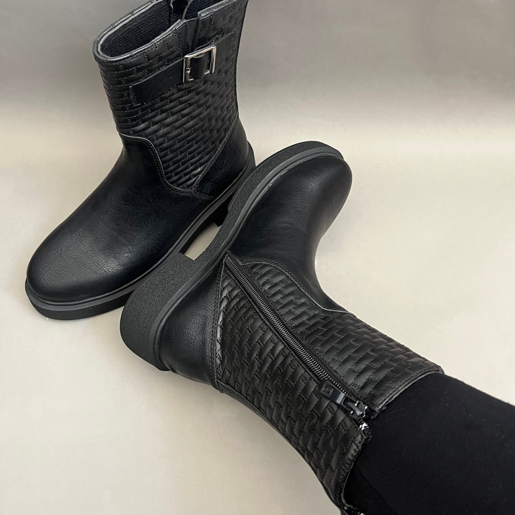 نیم بوت زنانه ساق بلند مدل آجری ، با رویه چرم صنعتی درجه یک تهیه شده و زیره این کار زیره پی یو مقاوم در برابر شکستن و سایش است. داخل بوت با پارچه پرز دار به جهت راحتی و گرم مگه داشتن پا آستر کشی شده و باز و بست بوت به وسیله زیپ میباشد .ارتفاع ساق کفش 20 سانتی متر و سایزبندی ان استاندارد است.🙌👟