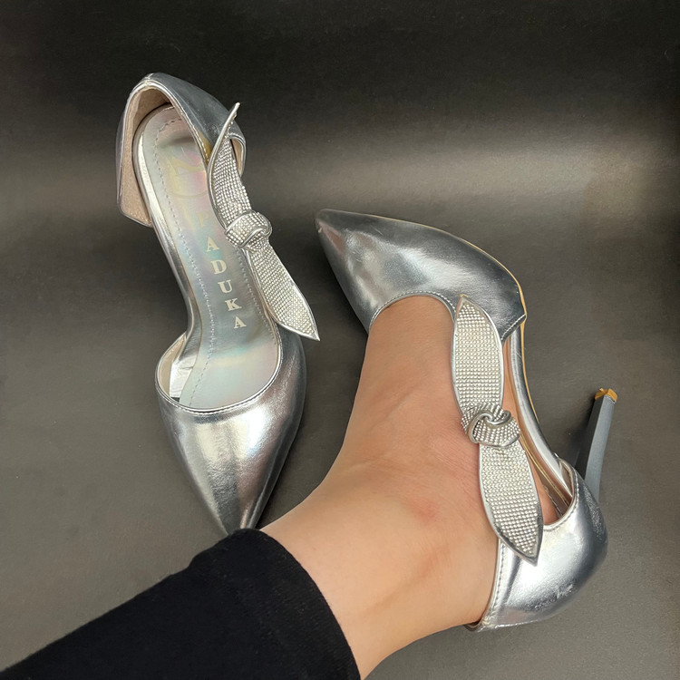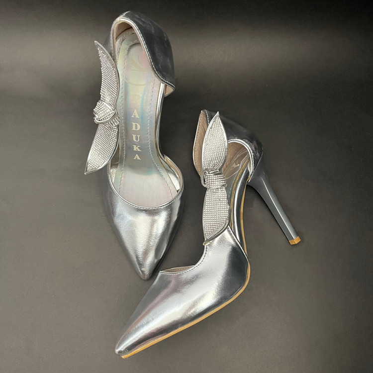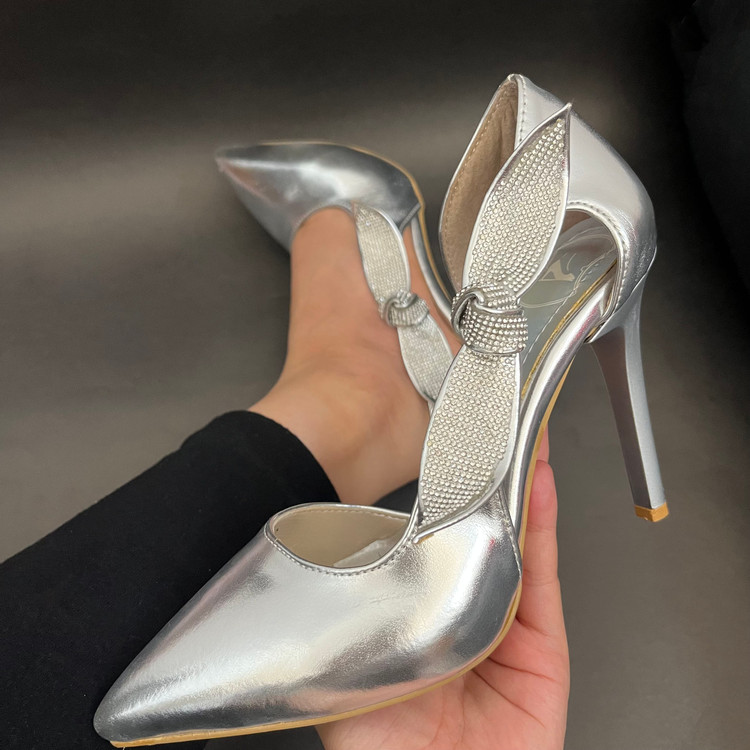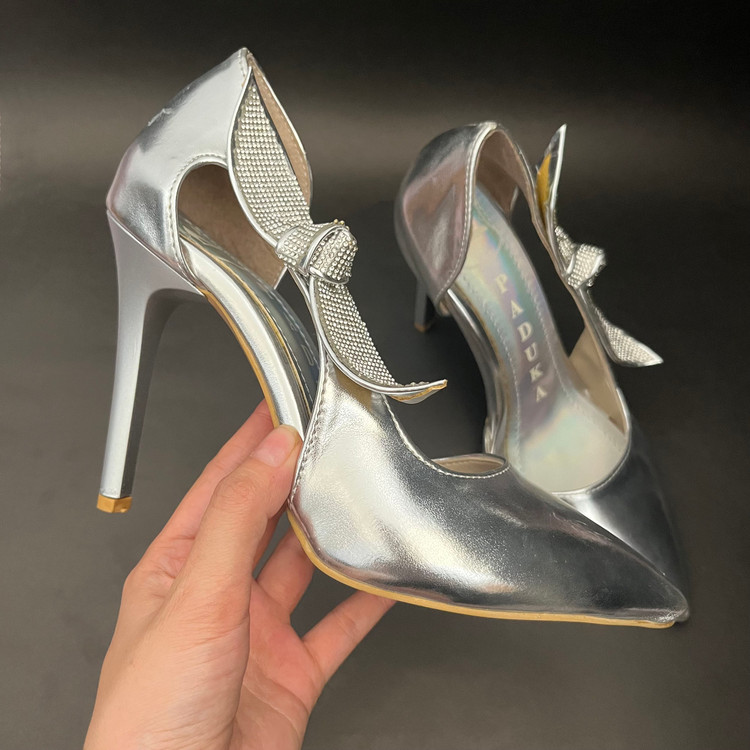 کفش پاشنه دار زنانه مدل رز پاشنه ده سانت رنگ نقره ای