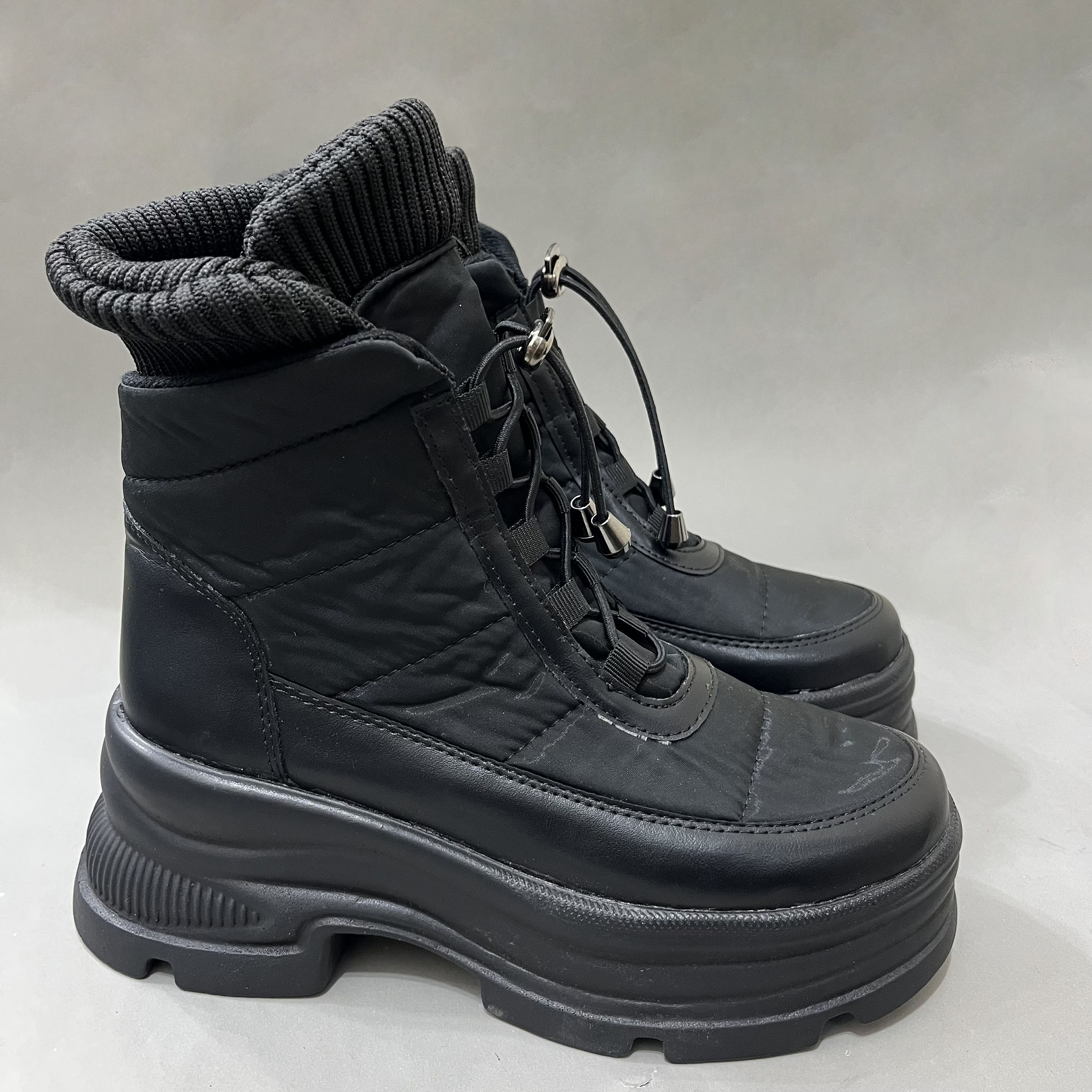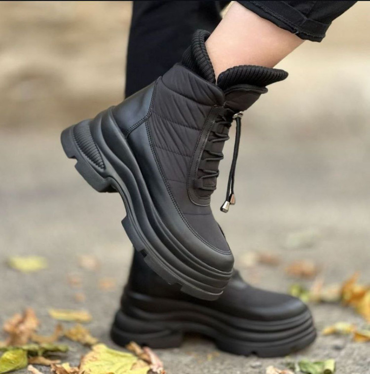 نیم بوت زنانه کاپشنی لژدار رنگ مشکی سایز بندی 37 تا 40