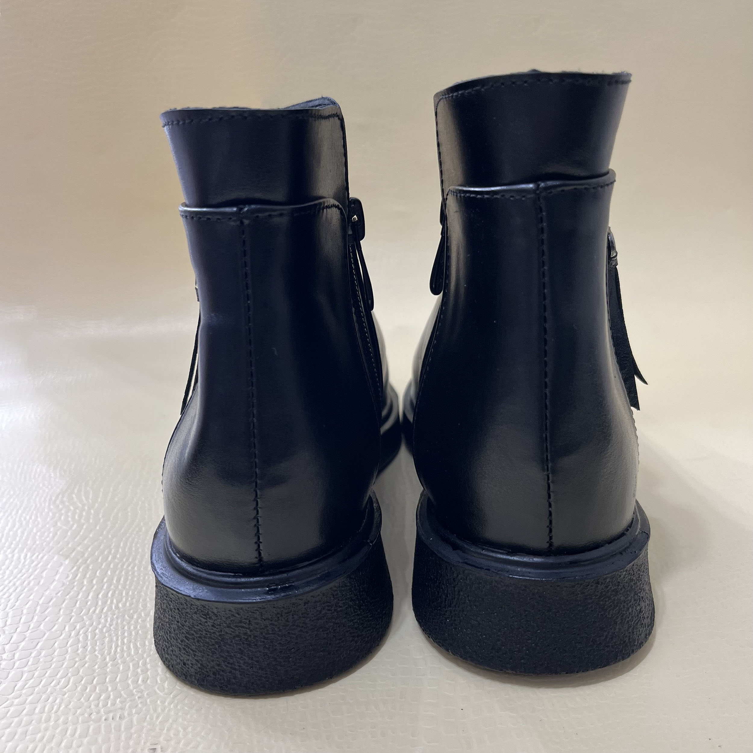 نیم بوت زنانه ساق کوتاه مدل پرنیان با رویه چرم صنعتی درجه یک و زیره پی یو سبک و مقاوم در برابر شکستن و سایش تهیه شده است .داخل کفش و کف ان به جهت راحتی و گرم نگه داشتن پا با پارچه پرز دار آستر کشی شده است.ارتفاع ساق کفش 12 سانتی متر و ارتفاع پاشنه 3 سانتی متر و در پنجه 1 سانتی متر میباشد .سایزبندی کار استاندارد میباشد .