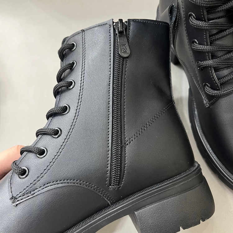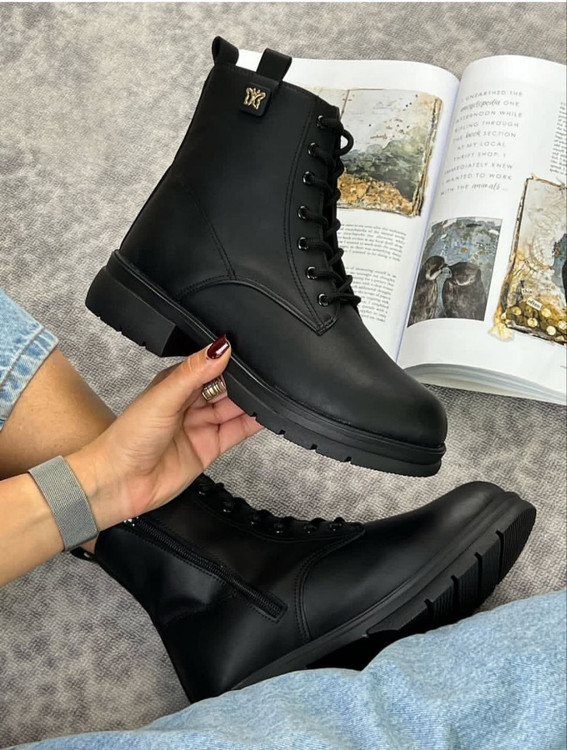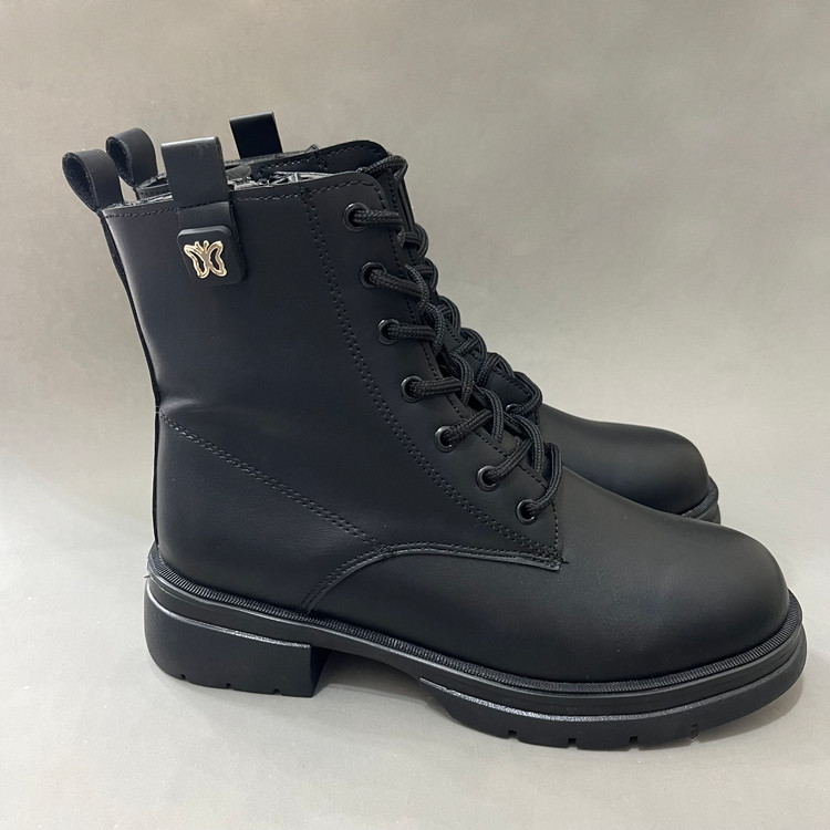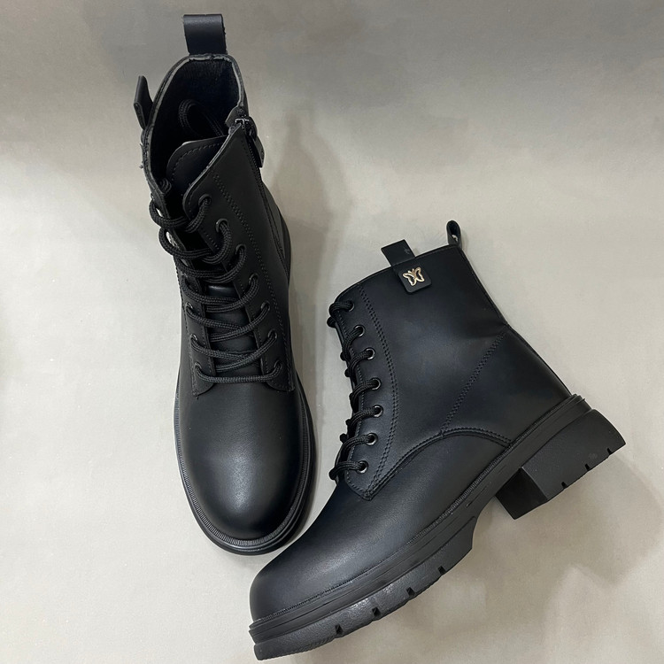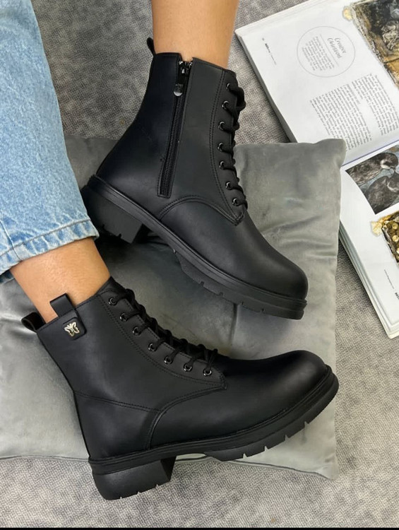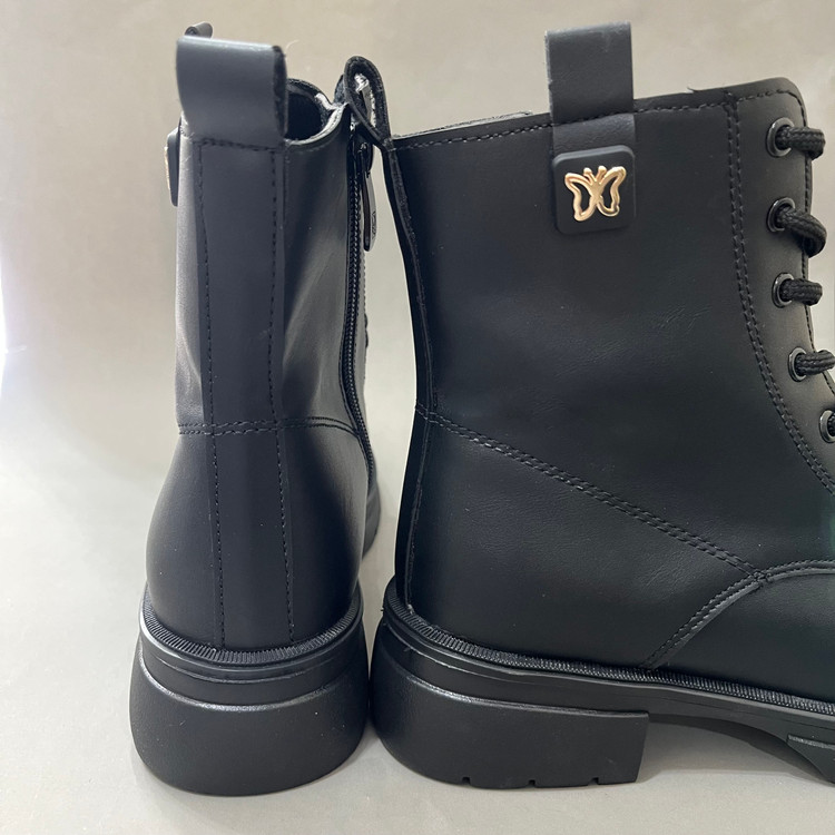 نیم بوت زنانه بندی مدل پروانه رنگ مشکی با رویه چرم صنعتی درجه یک و زیره پی یو سبک و مقاوم در برابر شکستن و سایش تهیه شده است. ارتفاع ساق محصول 14سانتی متر و ارتفاع لژ ان در پنجه 3 سانتی تر و در قسمت پاشنه 4 سانتی متر میباشد. تمام داخل و کف کفش به جهت راحتی و گرم نگه داشتن پا با پارچه پرز دار استر کشی شده است. سایز بندی محصول استاندارد میباشد.