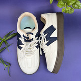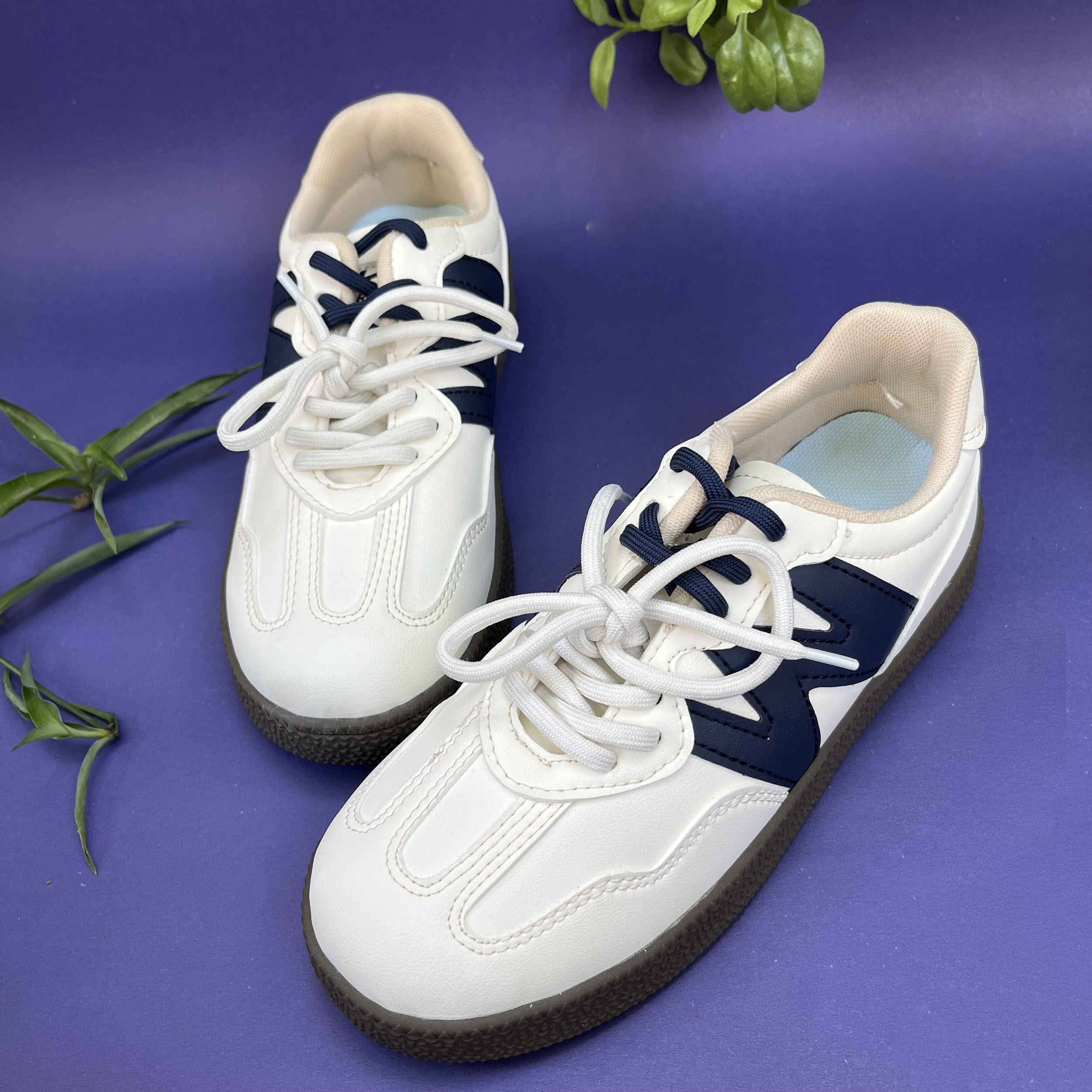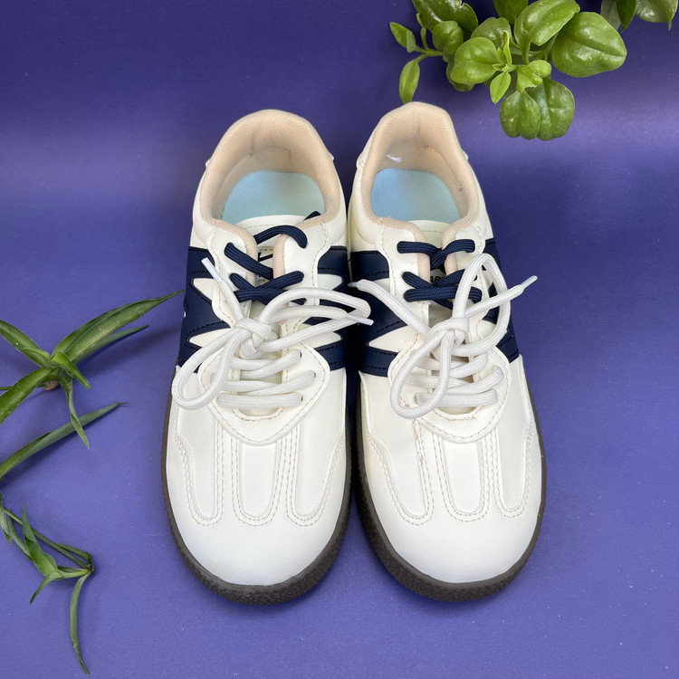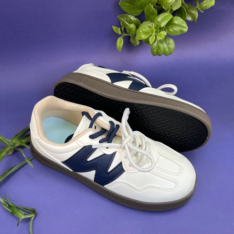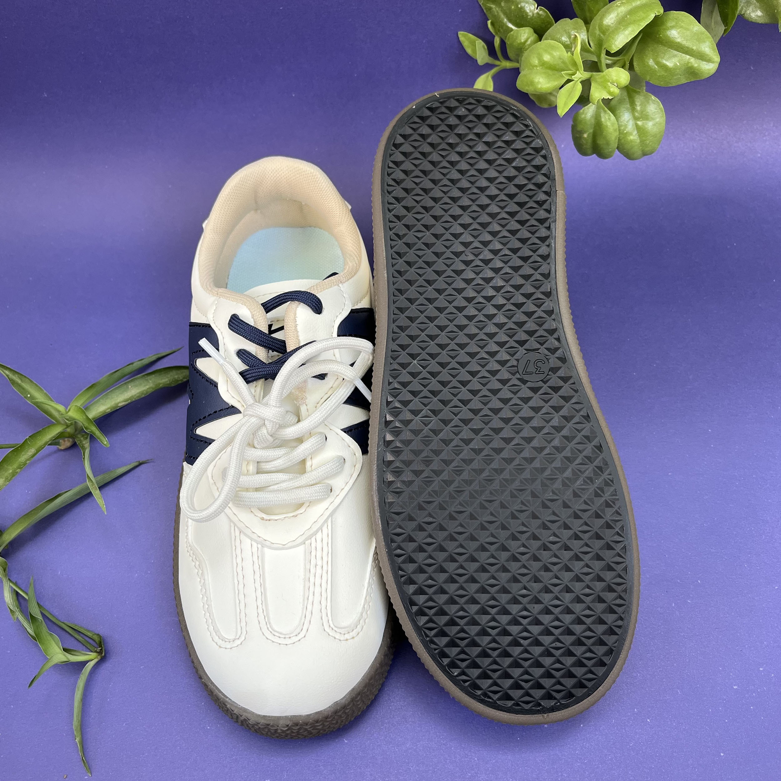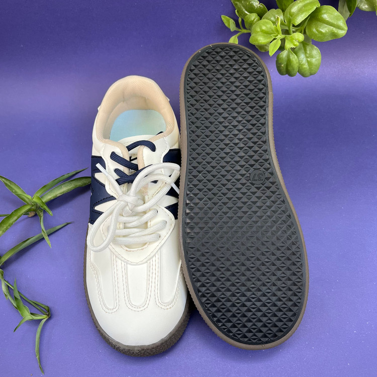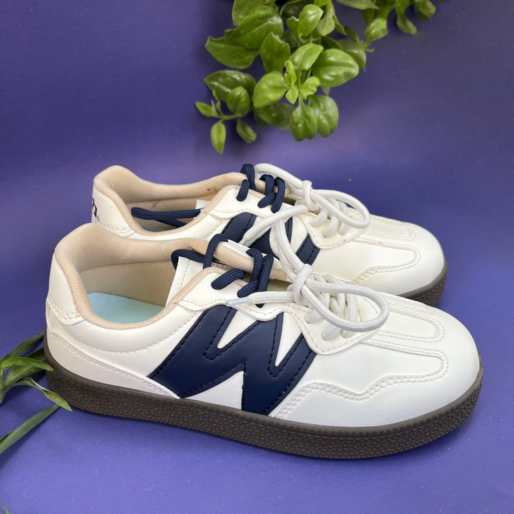 کفش ونس زنانه لژ دار مدل دبلیو رنگ کرم سورمه ای سایز بندی 37 تا 41