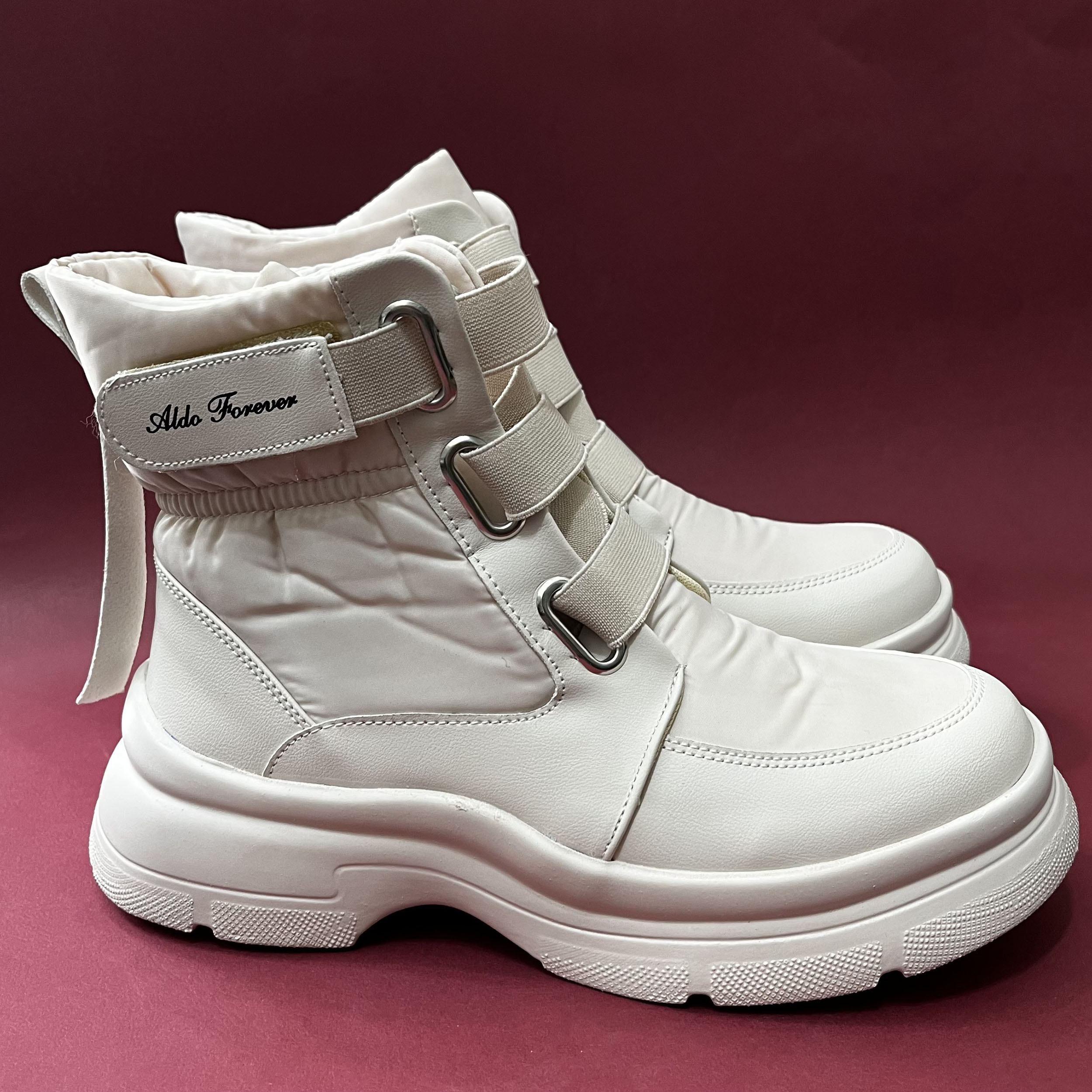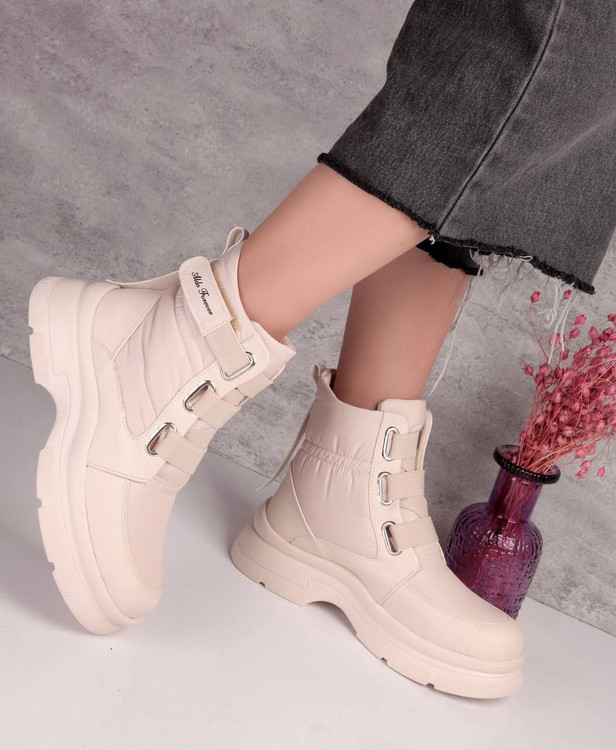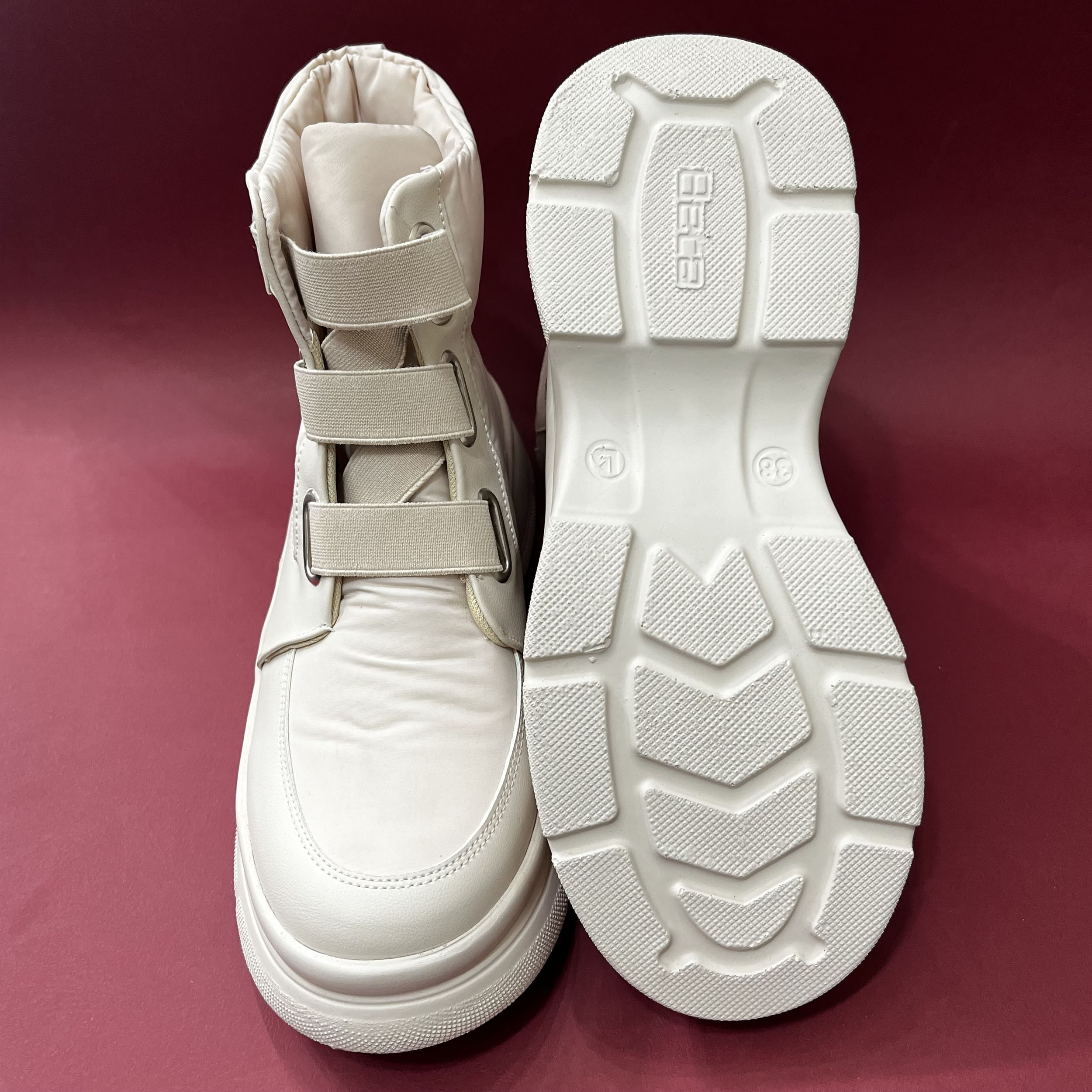 نیم بوت زنانه کاپشنی کشی لژدار رنگ کرم سایز بندی 37 تا 40