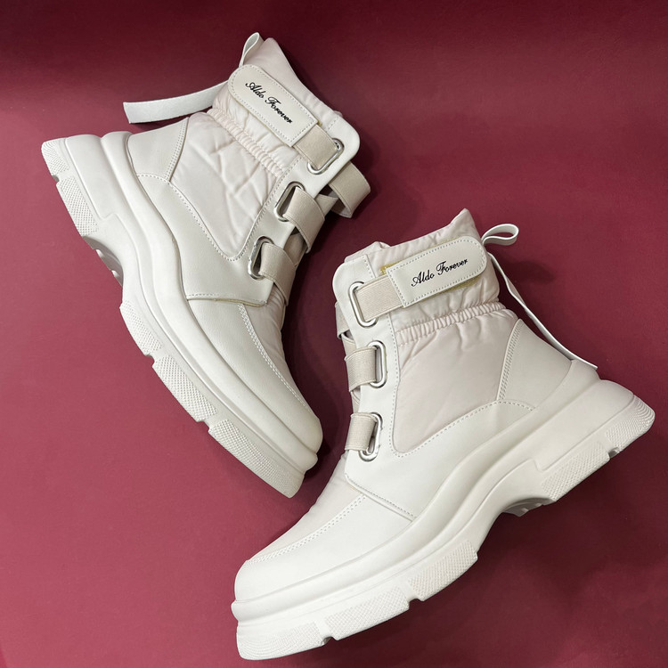 نیم بوت زنانه کاپشنی با رویه ترکیبی از پارچه ضد اب و چرم صنعتی تهیه شده است .زیره این بوت از پی یو سبک و مقاوم در برابر شکستن و سایش تهیه شده است.ارتفاع ساق کفش 13 سانتی متر ارتفاع لژ در پنجه 3.5 و در پاشنه 5 سانتی متر و باز و بست نیم بوت به وسیله بندهای کشی میباشد. داخل کفش و کف ان به جهت راحتی پا و گرم نگه داشتن آن به وسیله پارچه پرز دار آستر کشی شده است.سایزبندی کفش استاندارد است .