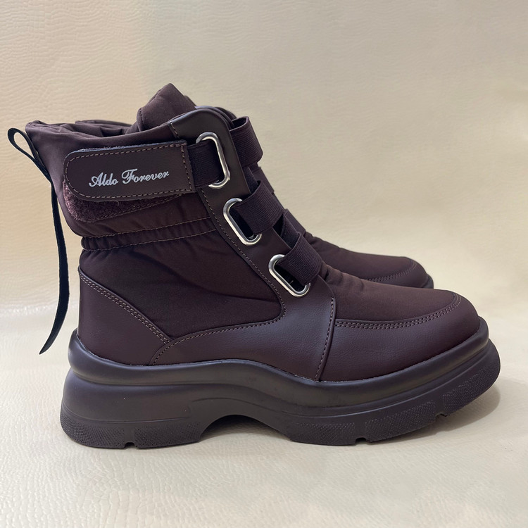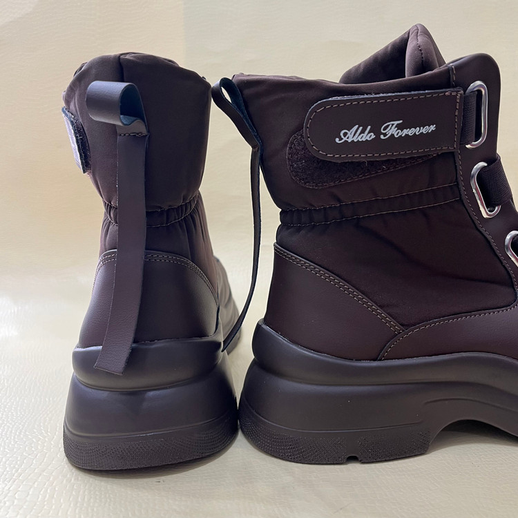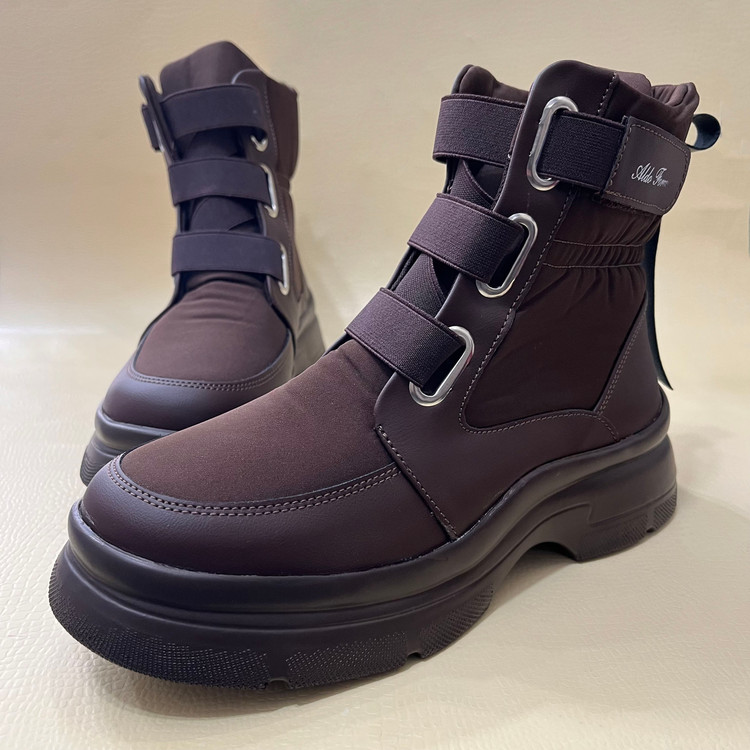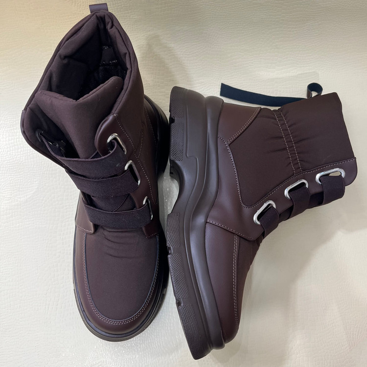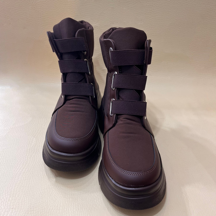 نیم بوت زنانه کاپشنی با رویه ترکیبی از پارچه ضد اب و چرم صنعتی تهیه شده است .زیره این بوت از پی یو سبک و مقاوم در برابر شکستن و سایش تهیه شده است.ارتفاع ساق کفش 13 سانتی متر ارتفاع لژ در پنجه 3.5 و در پاشنه 5 سانتی متر و باز و بست نیم بوت به وسیله بندهای کشی میباشد. داخل کفش و کف ان به جهت راحتی پا و گرم نگه داشتن آن به وسیله پارچه پرز دار آستر کشی شده است.سایزبندی کفش استاندارد است .