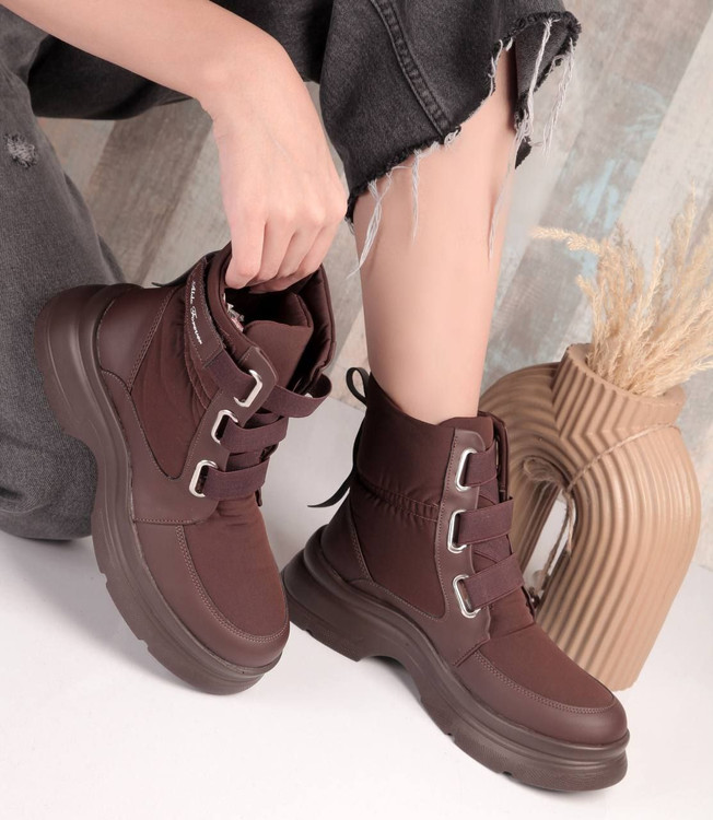 نیم بوت زنانه کاپشنی کشی لژدار رنگ قهوه ای سایز بندی 37 تا 40