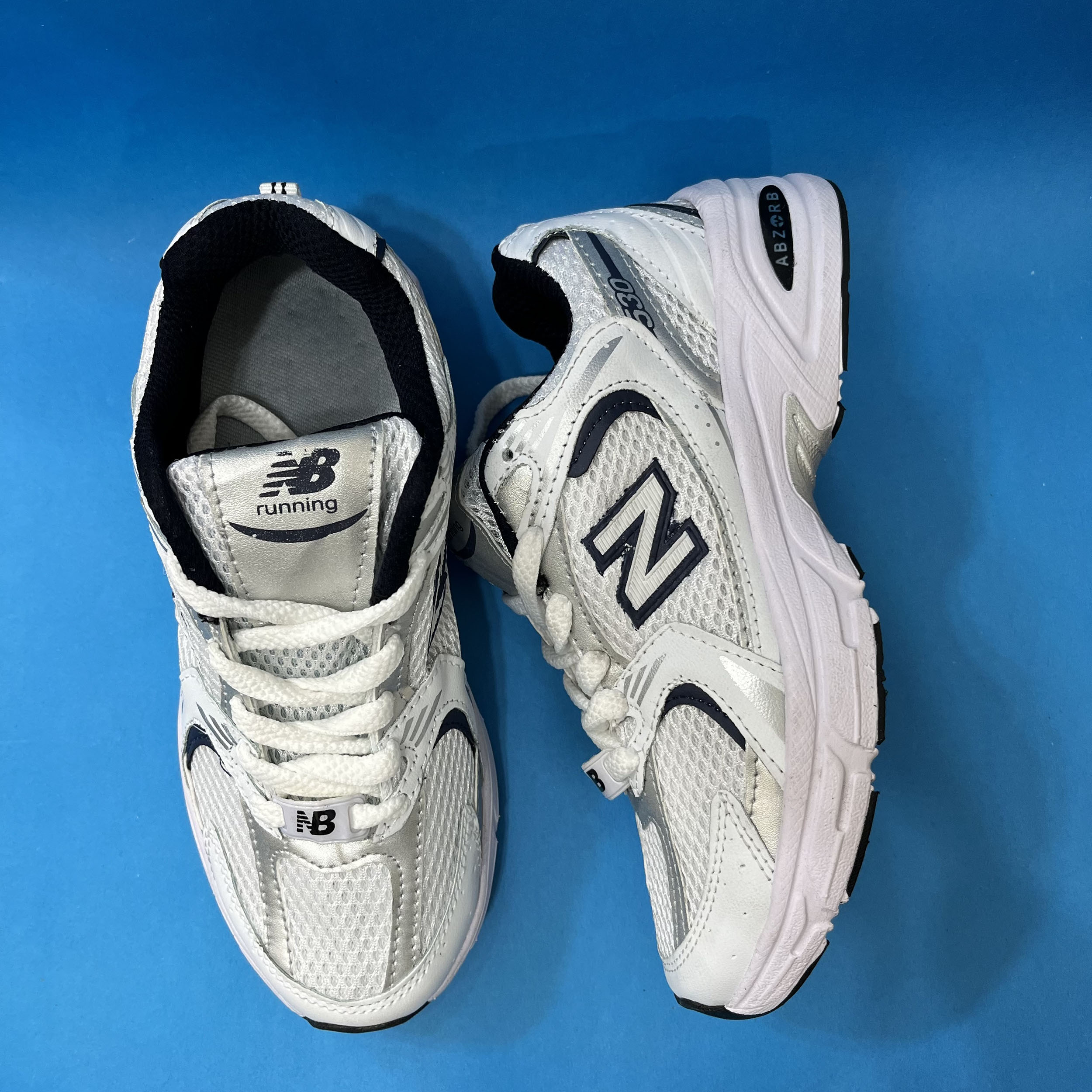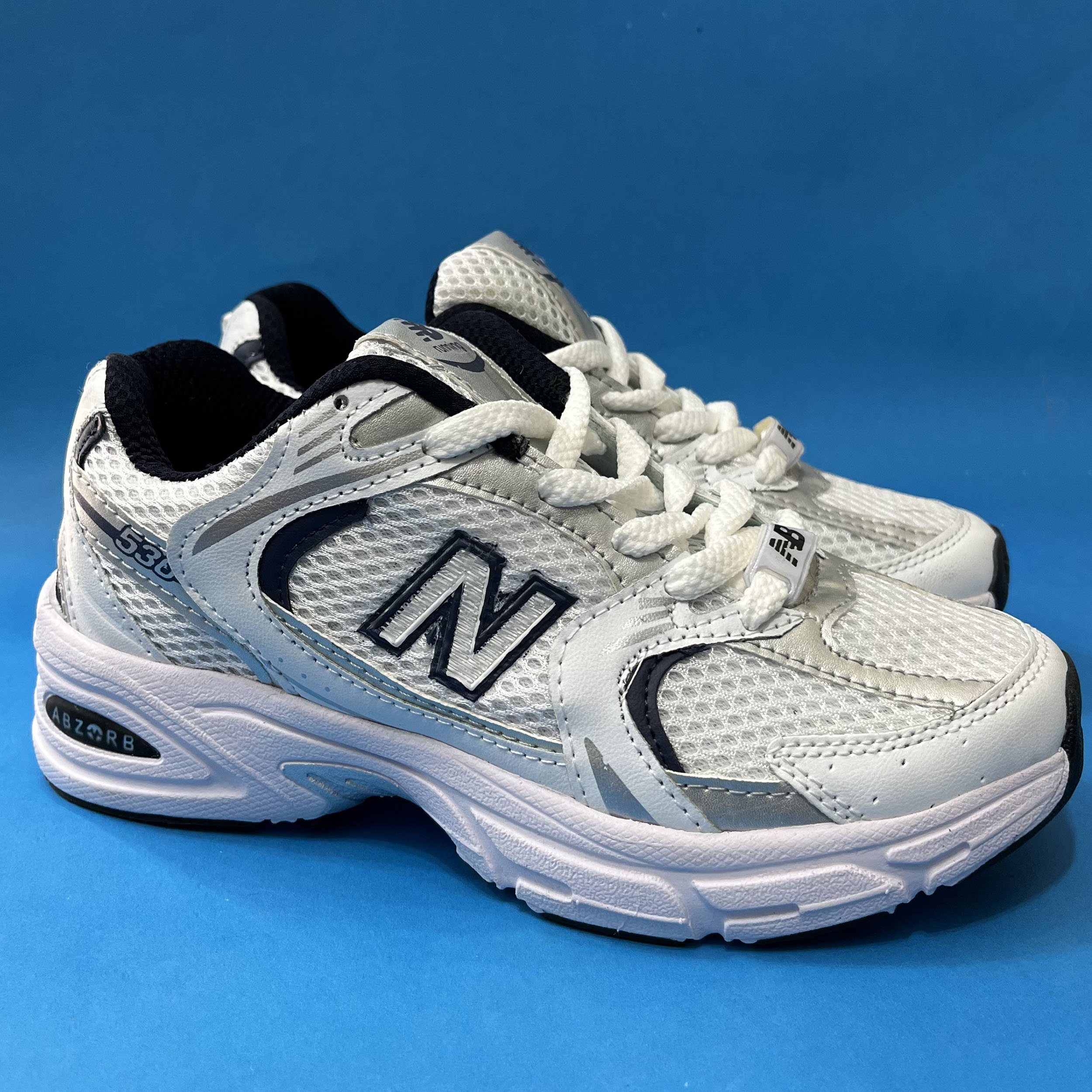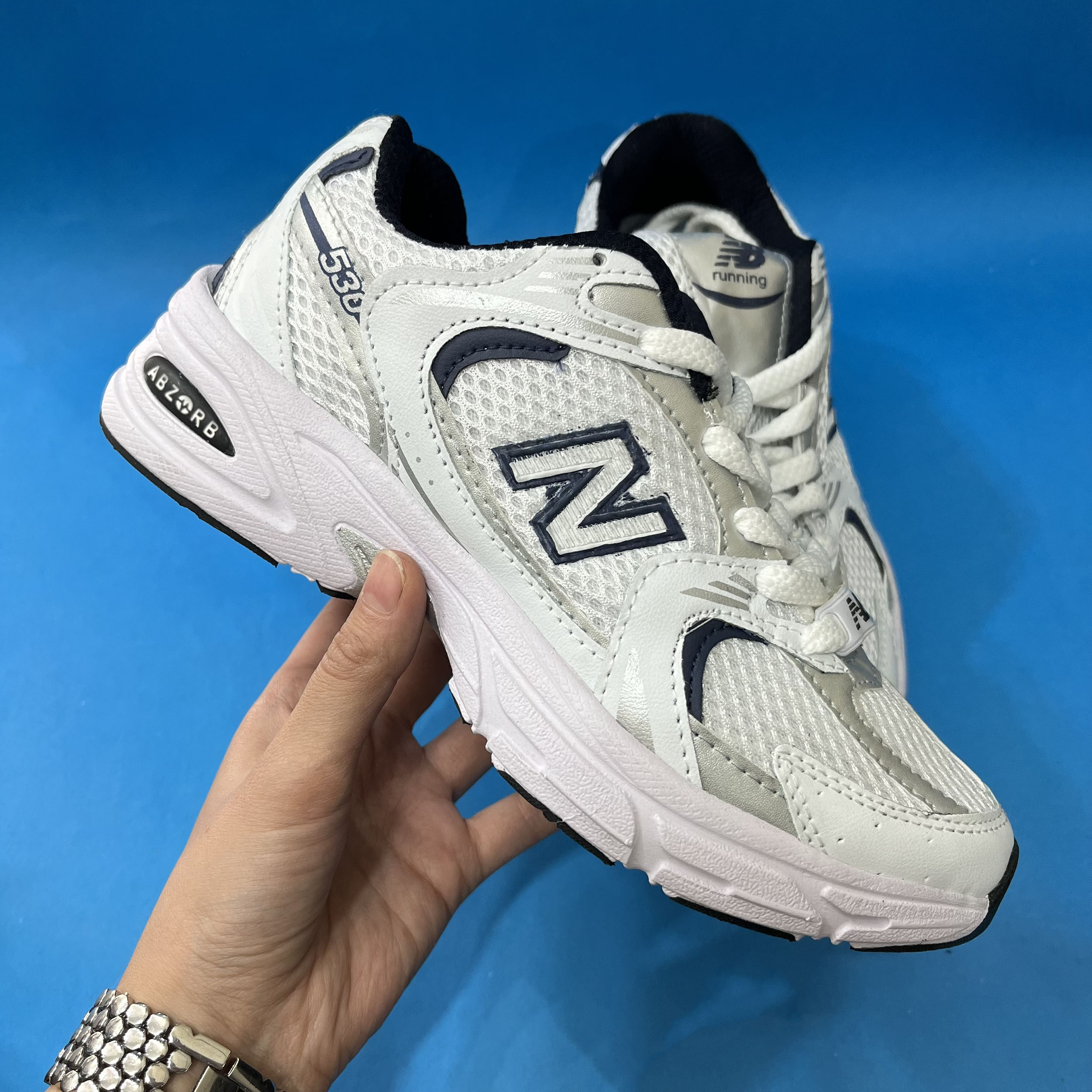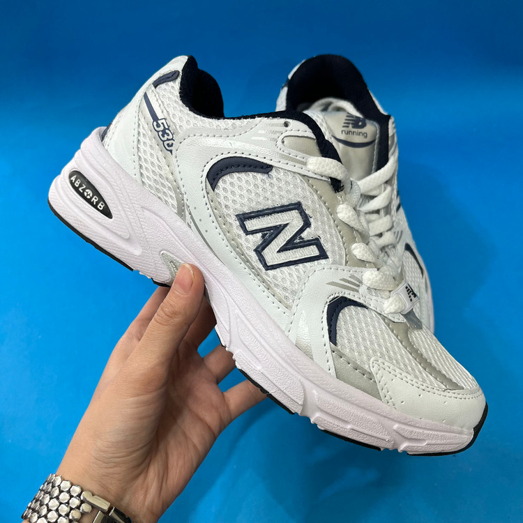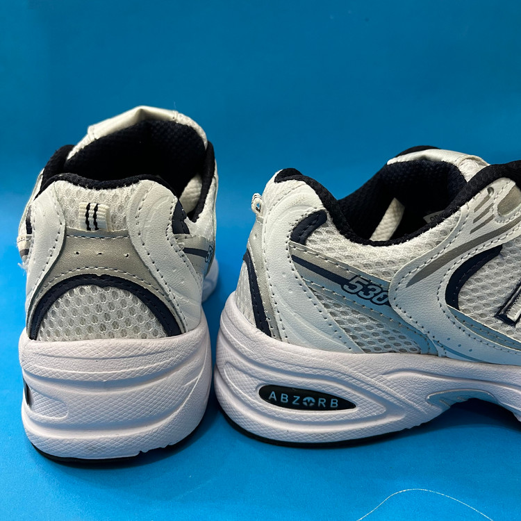 کفش نیوبالانس 530 زنانه رنگ سفید سورمه ای ،با رویه ترکیبی از پارچه اسپنسر درجه یک و چرم صنعتی تهیه شده است .زیره این کار زیره پی یو مقاوم در برابر شکستن و سایش است از ویژگی های دیگر این زیره به ثبات رنگ و زرد نشدن ان میتوان اشاره کرد.داخل کفش به جهت راحتی و تعریق بهتر با پارچه سوزنی آستر کشی شده است .این کفش تماما از داخل دور دوزی شده و محکم میباشد.سایزبندی کار استاندارد است.
