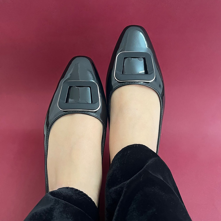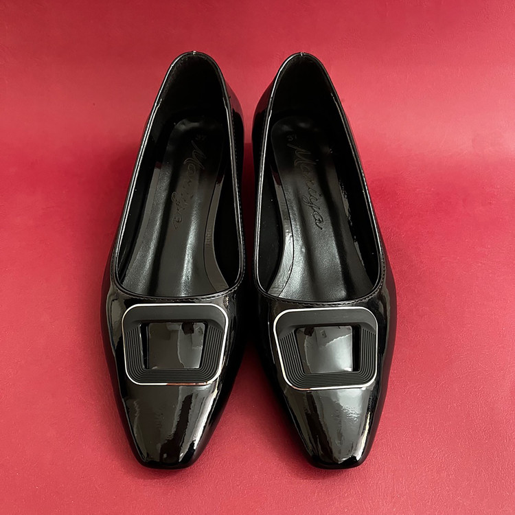 کفش زنانه مدل ارمغان با رویه چرم صنعتی ورنی مرغوب مقاوم در برابر شکستن و پوسته شدن تهیه شده است.زیره این کفش زیره داووس کف قرمز میباشد. مدل پنجه این کفش پاشنه کوتاه و پاخور راحت ان این کفش را مناسب استفاده طولانی مدت و افراد با پنجه پای پهن میسازد.